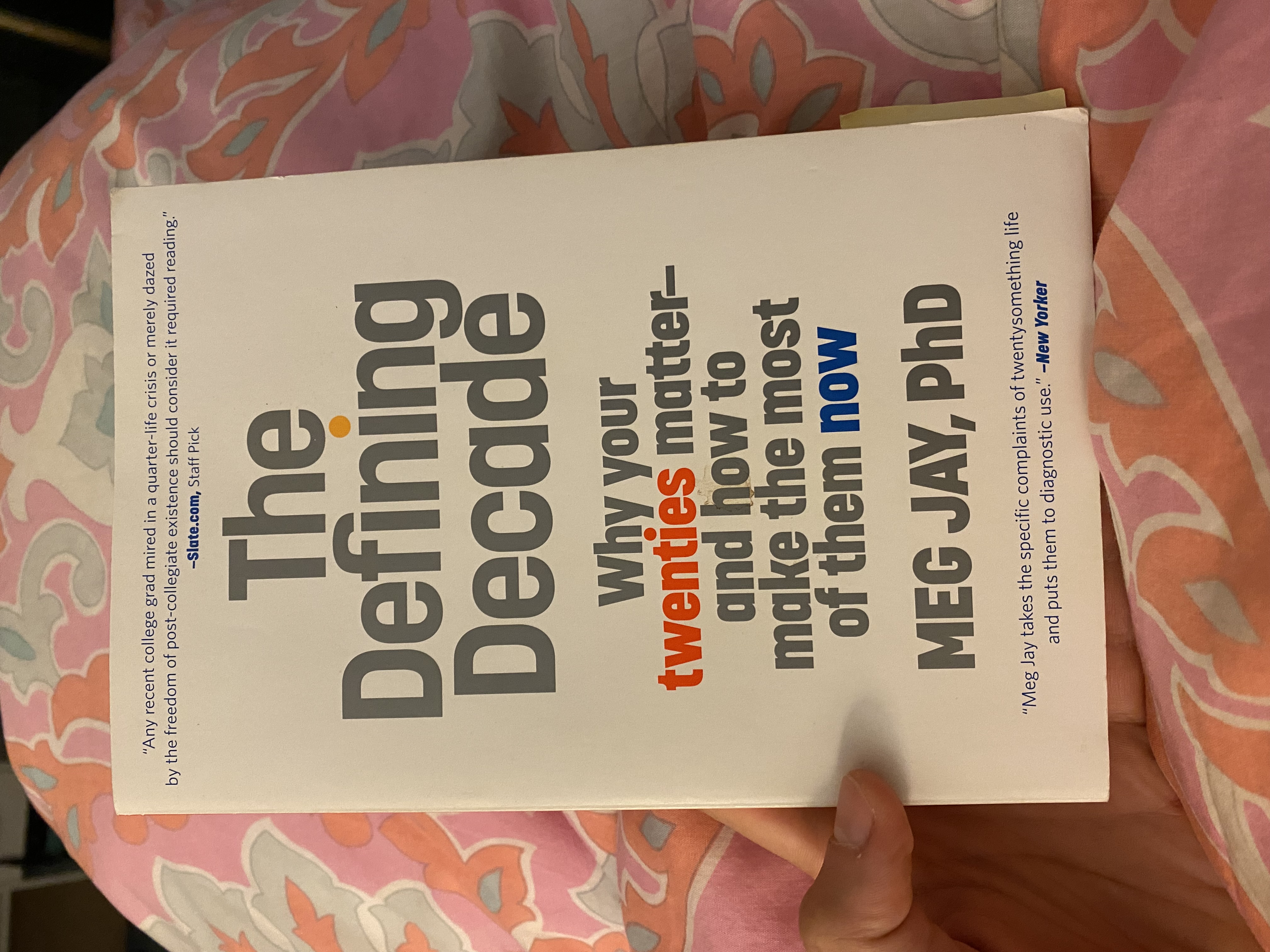 The book: The Defining Decade Why your twenties matter- and make the most of them now by Meg Jay.