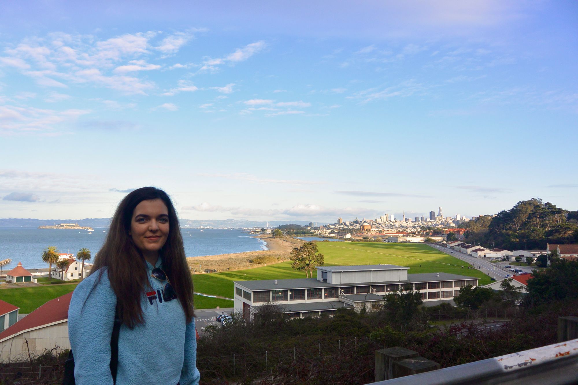 Last but not least, beautiful views from Presidio Park. It had a gorgeous view of the Golden Gate Bridge (not pictured). The island to the left of my soft smiling face is Alcatraz Island. I was going to take the ferry there but heard it wasn't worth it.