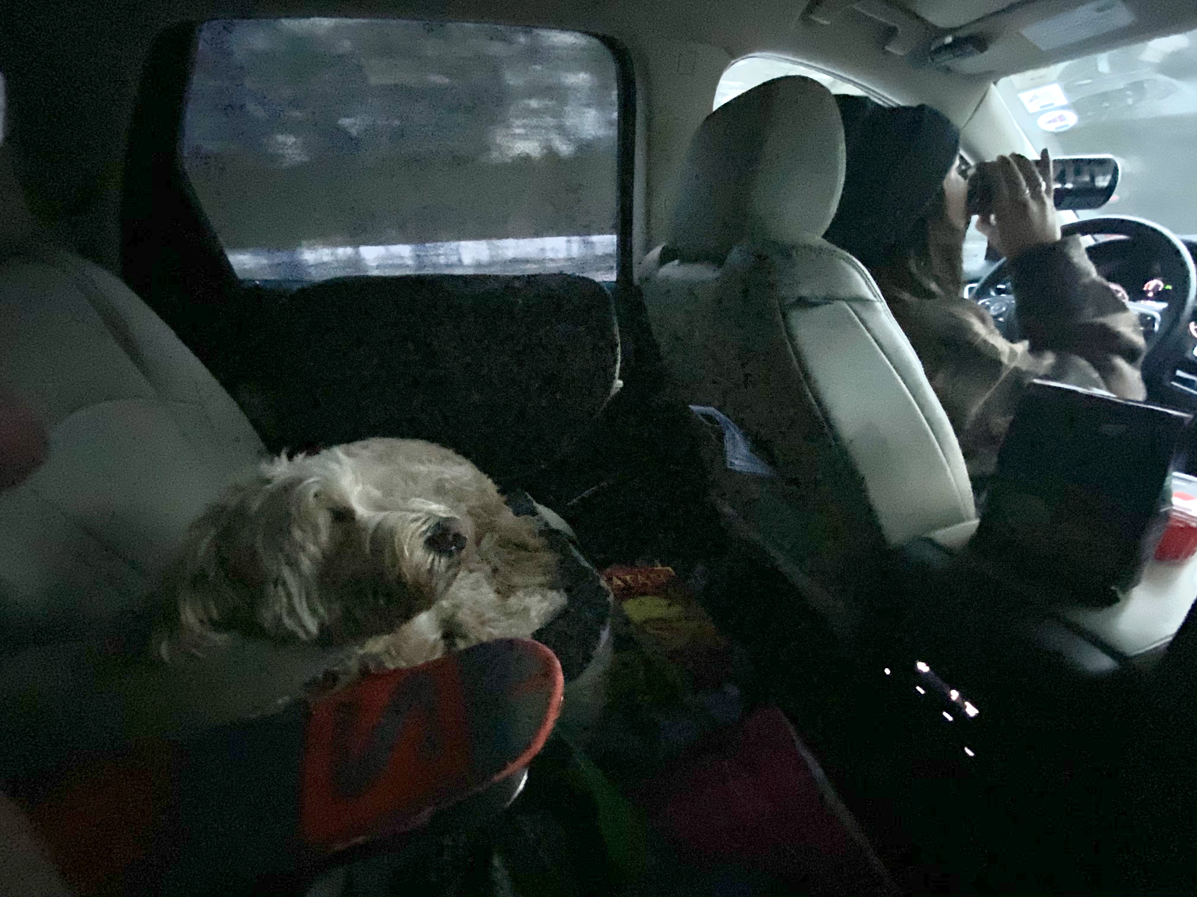 This was my view for a 5-hour drive across the state of Michigan featuring: a sleepy golden doodle named Paisley, some skis, a new game called Catan, and some refreshing Arnold Palmer beverages.