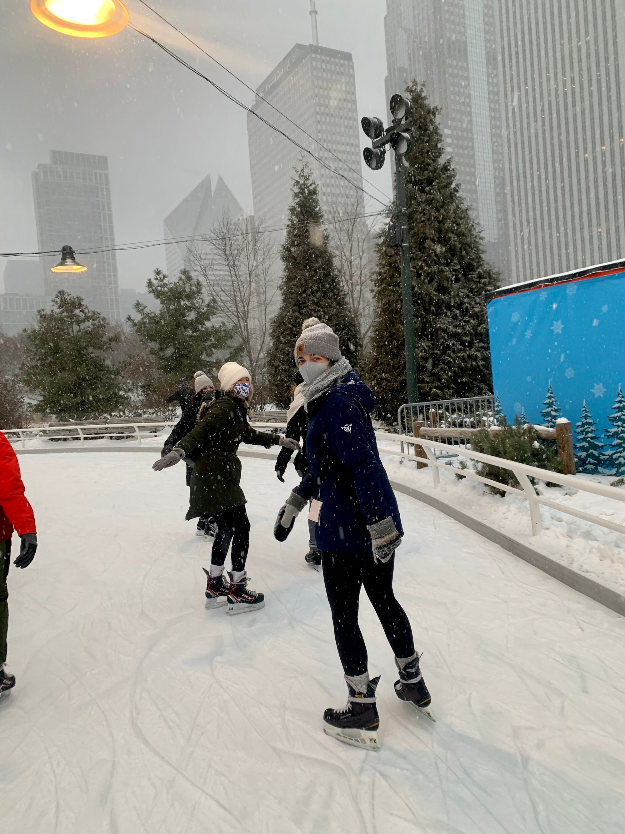 I ventured over to the Maggie Daley Park in downtown Chicago to get my skate on. I am absolutely awful at ice skating, which is pretty unconventional for living here in Midwest. On top of that is was snowing, so that made matters worse. My first time on an ice rink was at the Science Park in Amsterdam in 2017. I was horrified by the speed skaters that flew past me. I had completely lost control and felt like the least Dutch person there ever was trying out a new sport for the first time. When I came back to the states the following year, I took lessons in Ohio at the local community center, but I completely forgot everything that I was taught.