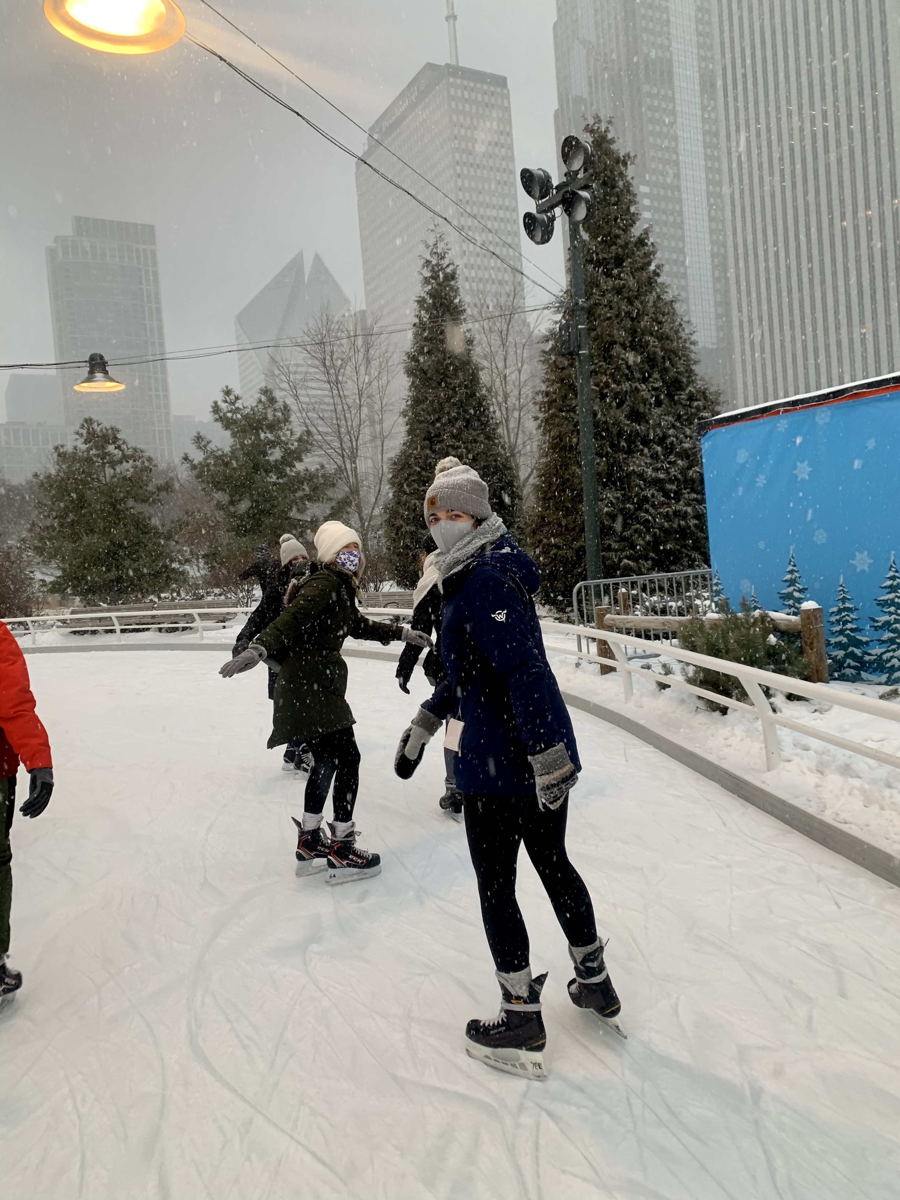 I ventured over to the Maggie Daley Park in downtown Chicago to get my skate on. I am absolutely awful at ice skating, which is pretty unconventional for living here in Midwest. On top of that is was snowing, so that made matters worse. My first time on an ice rink was at the Science Park in Amsterdam in 2017. I was horrified by the speed skaters that flew past me. I had completely lost control and felt like the least Dutch person there ever was trying out a new sport for the first time. When I came back to the states the following year, I took lessons in Ohio at the local community center, but I completely forgot everything that I was taught.