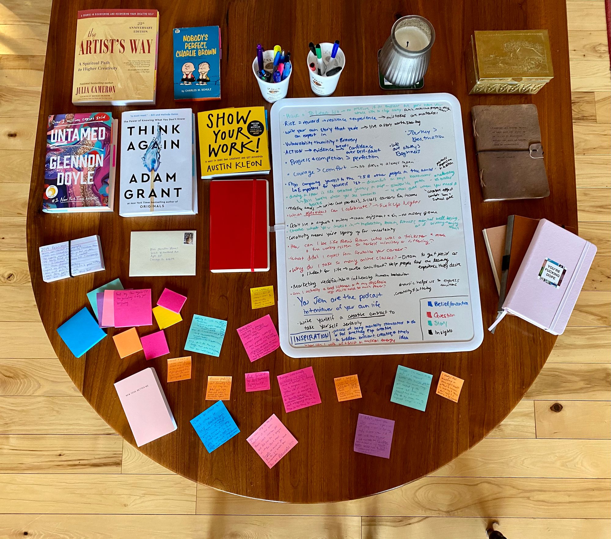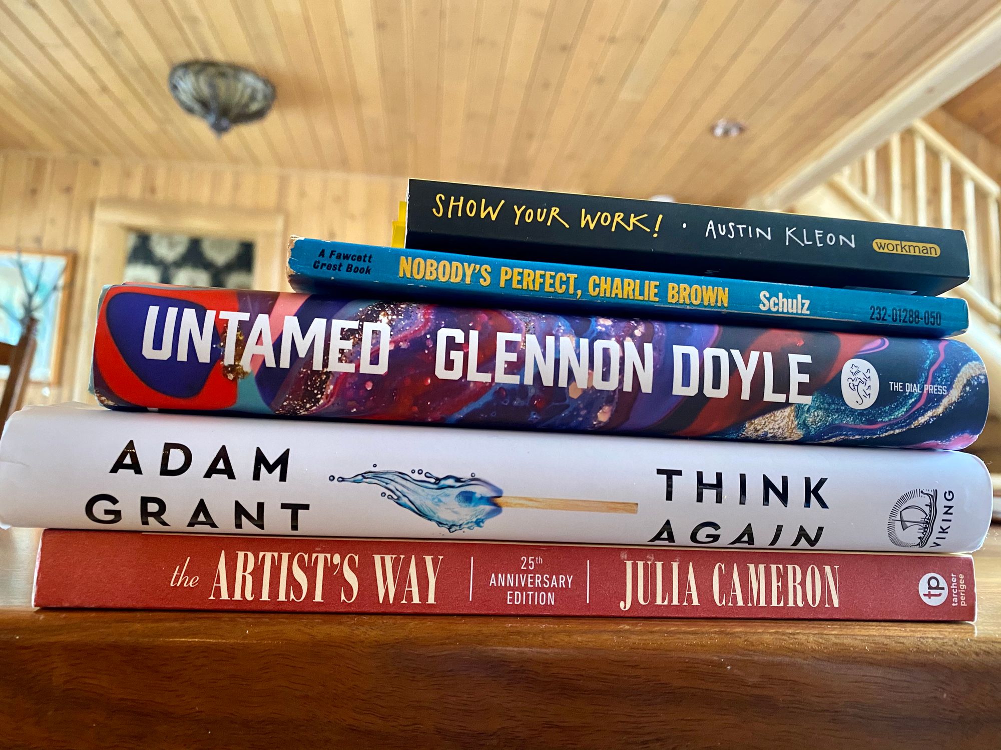 I brought up nine different books. I like to have options of what to read based on what my mood is. I didn't expect these to be the ones I landed on. I read Austin Kleon's book from start to finish on Show Your Work. Wow, it was such a great change of pace with the graphics. I highly recommend it if you are at all skeptical about sharing your creativity or the power of learning in public.