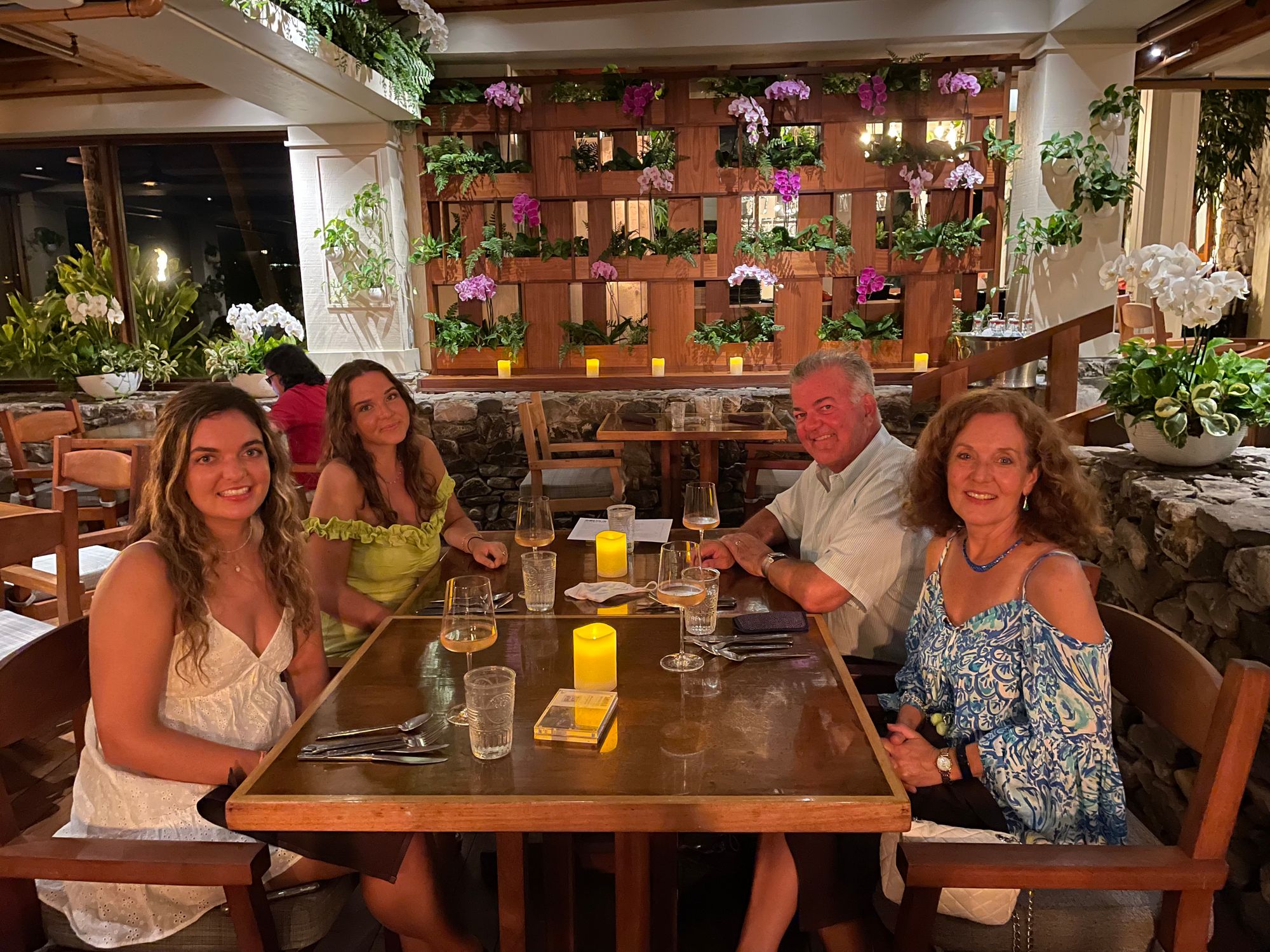 It was a blend of the gezellig environment alive hanging orchids around me. The stories being shared with my family about slugs in Edinburgh, whales in Cape Cod, and frogs in the Netherlands. The waiter and her passion to share the cuisine with us. The meal I picked of the ono fish drizzled with spicy pineapple jelly. If you know me you know that I really want to like spice but I struggle to do so the bed of rice was my savior. The caramelized banana foster with a macadamia nut ice cream and Portuguese malasada doughnut.