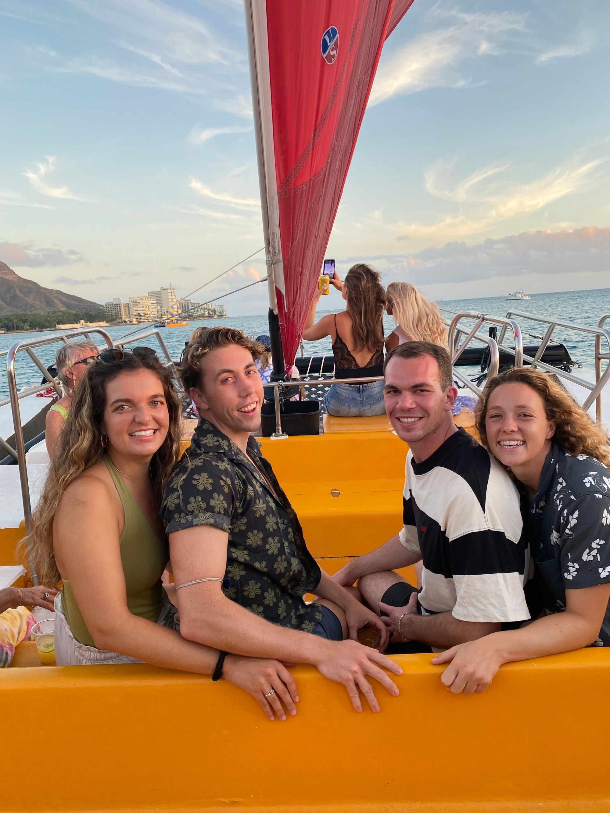 My mainland friends Ben and Shayne have been visiting, and it’s been feeling like a ‘full house’. I wouldn’t have it any other way. After starting thanksgiving with the sunrise surf, we ended it with a sunset sail on the beautiful catamaran Na Hoku II. Every time I’m out of the water and see Honolulu, I can’t help myself but drop my jaw.