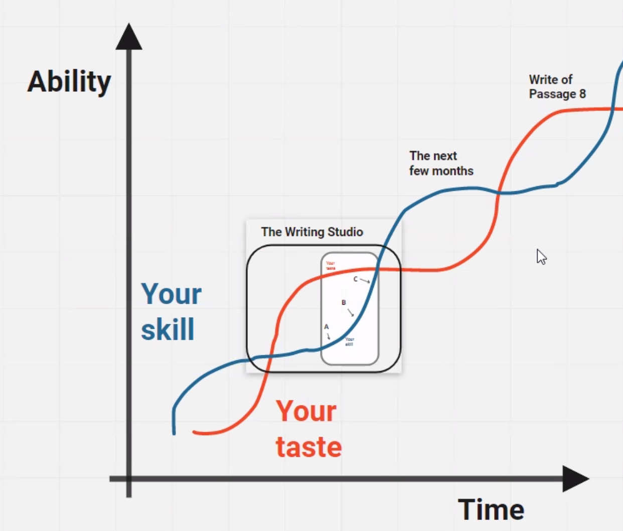 An idea that comforted me is knowing how growth in writing is cyclical. If I keep on reading my favorite writers and noticing why I enjoy their writing, my taste will improve and then create a standard for my ability.