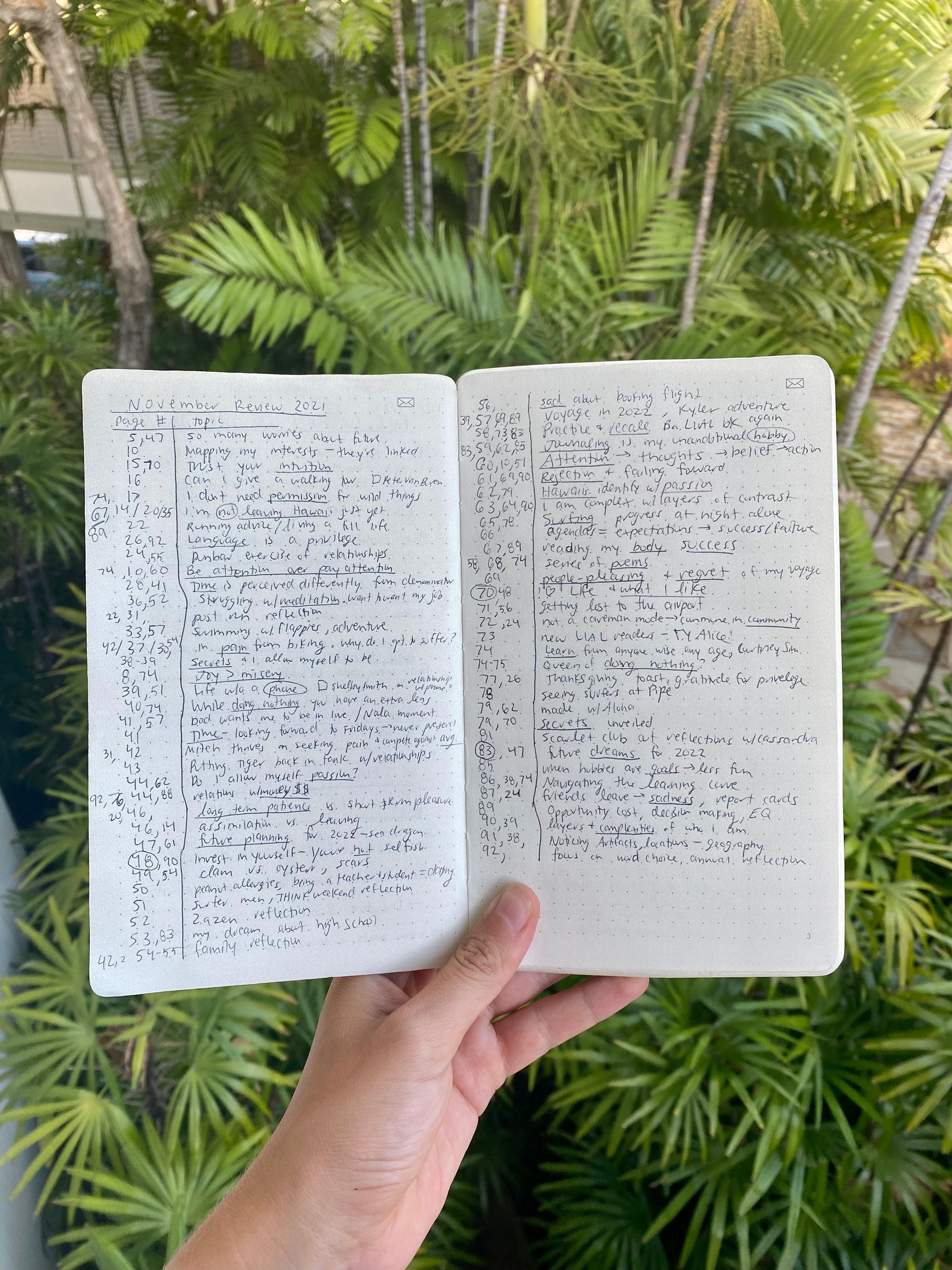 I created a table of contents across my journal entries to synthesize all the life that had been lived. Typically each month, I skim to review but this time I did a deep dive into it.