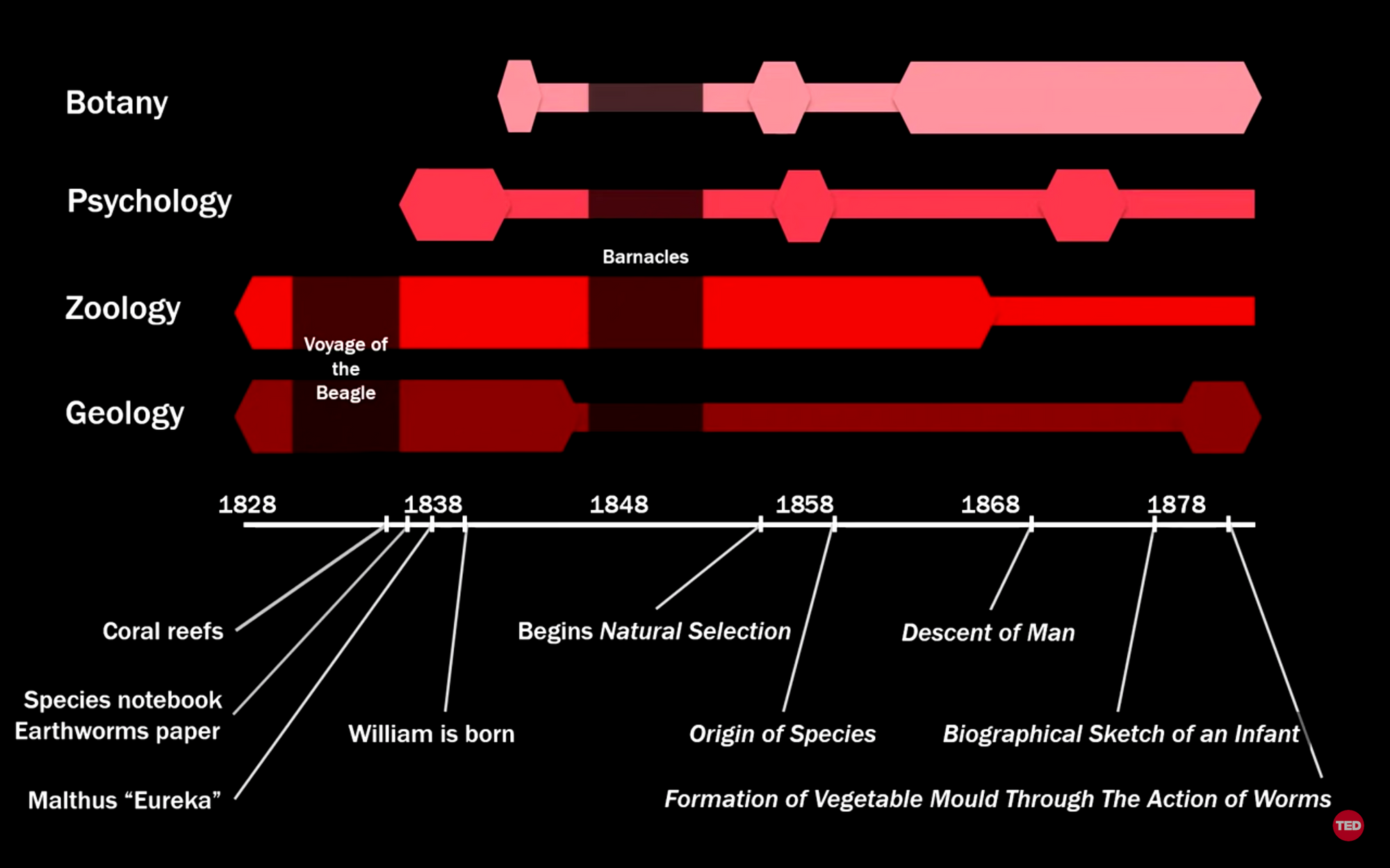 - Charles Darwin and his varying projects. It took him 44 years to publish his project on Earthworms.