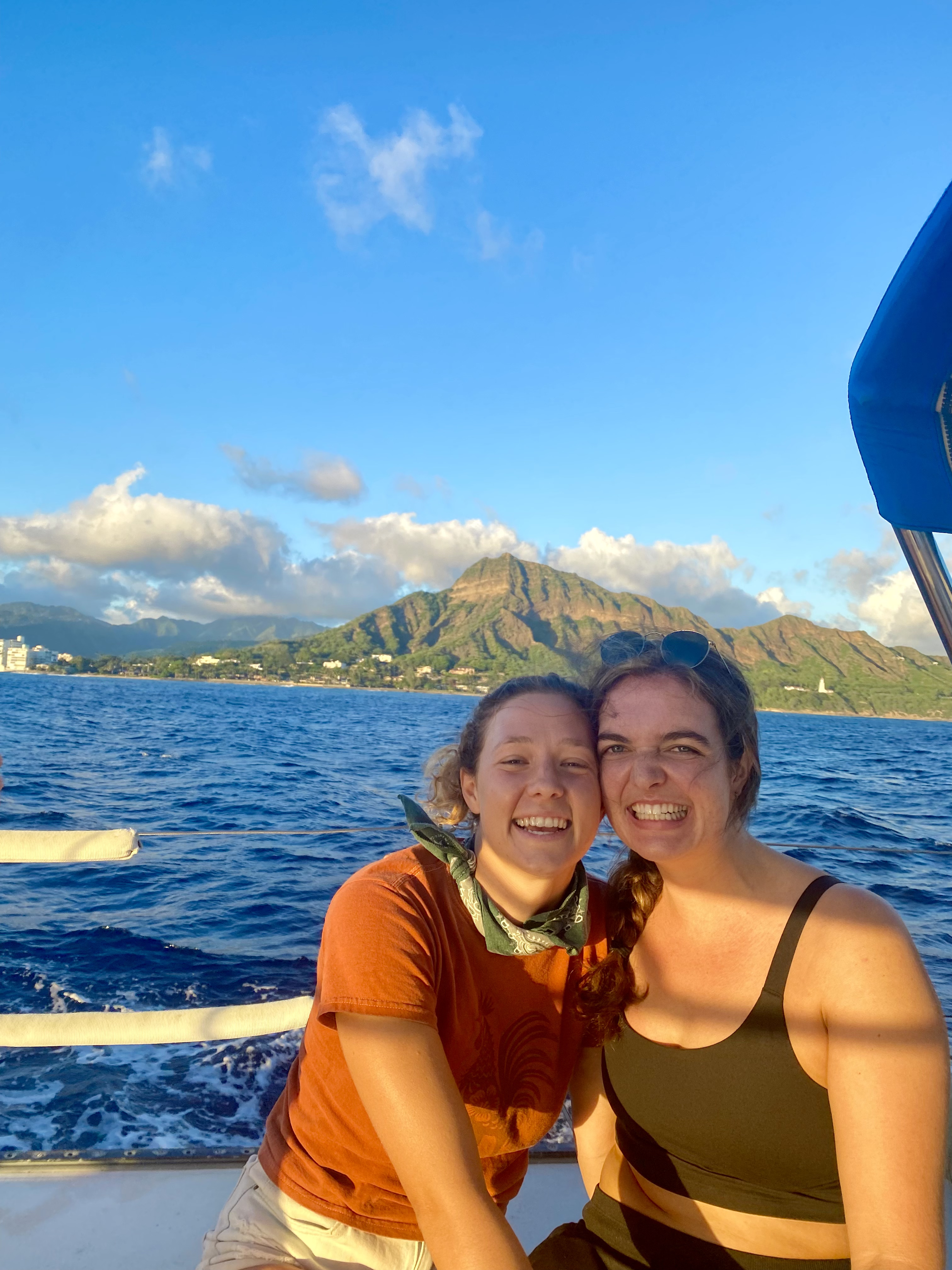 Within my first 24 hours of being back on island, I had a solid surf session and a beautiful sunset sail. I caught three of the biggest waves, around 4-5 feet tall, in my six month career at a new (to me) surf spot called "threes" off of Waikiki. It was absolutely epic. I couldn't stop smiling. I've missed this community that has been created here. It's unlike anything I have ever felt before in my life.