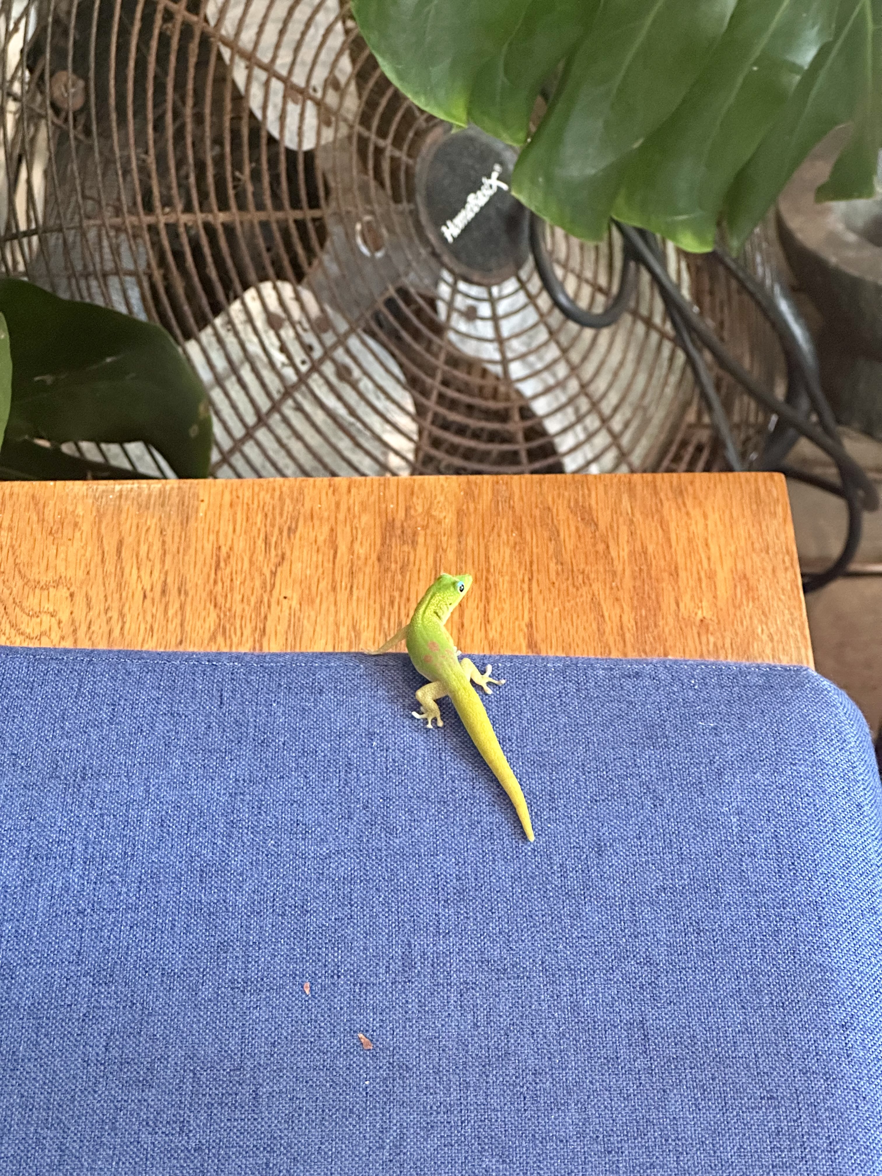 I meditated on a golden gecko at the pool and lost track of time. He does not put pressure on himself to be ambitious or self-actualize and seems to be living a simple and content life.