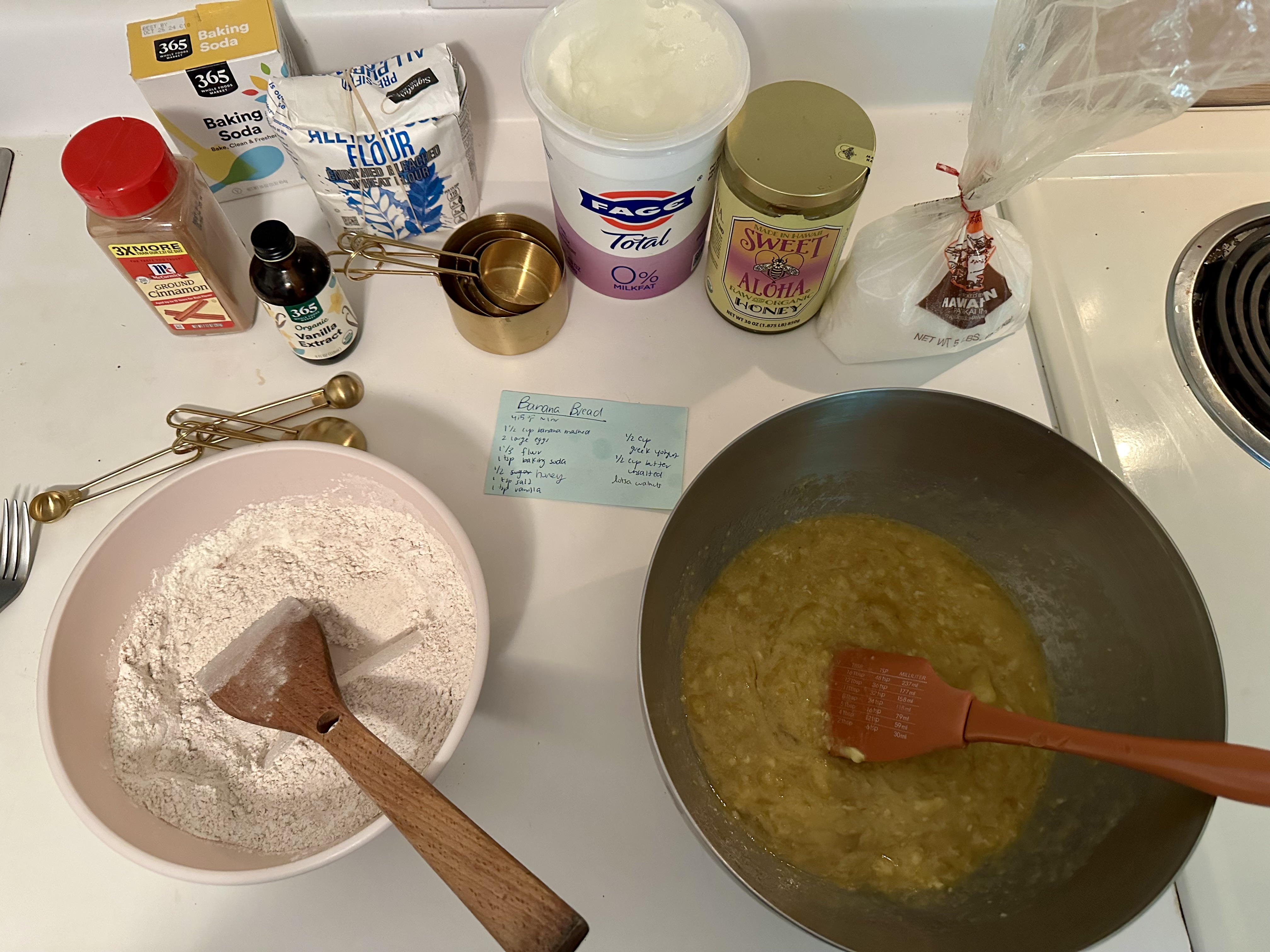 - Banana bread still tastes okay if you bake it with half as many eggs as needed, though it will taste drier.