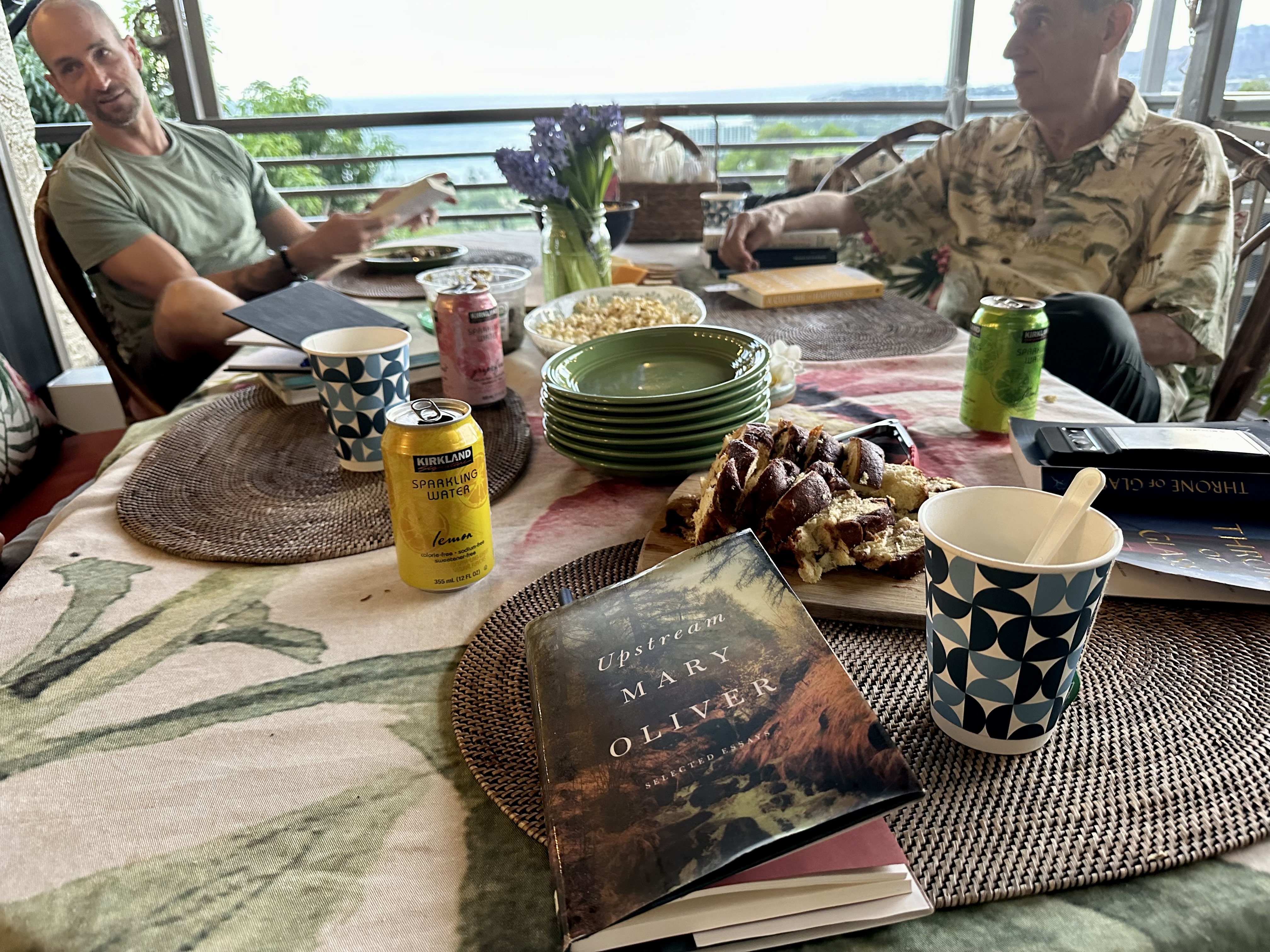 I facilitating a reading party on my friend Roger’s lanai for the first time