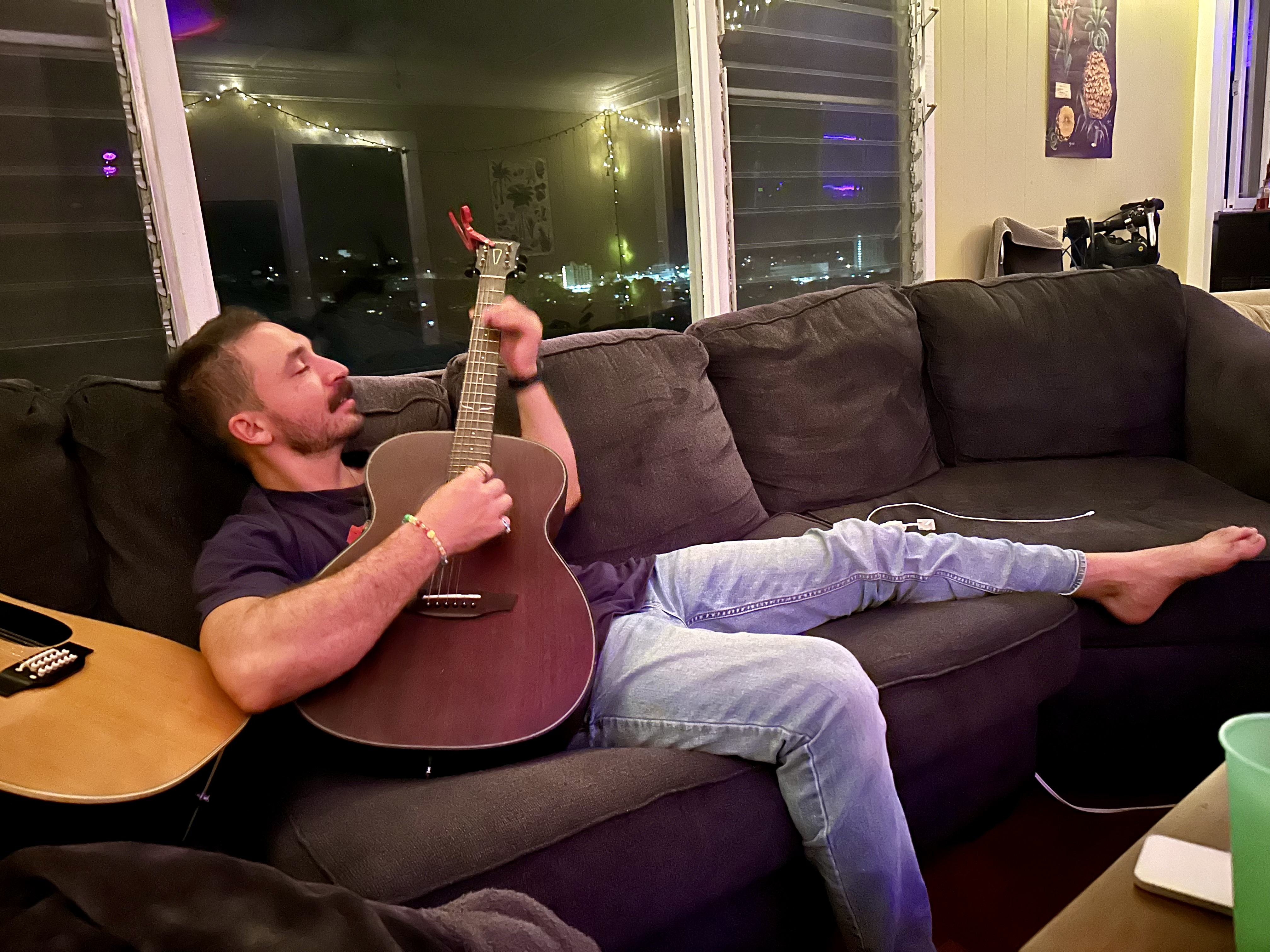 - I got the Tabs app and learned to play a song with eight chords on my ukulele. Four of them are new, including the E minor, D minor, D minor 7, and F major 7.