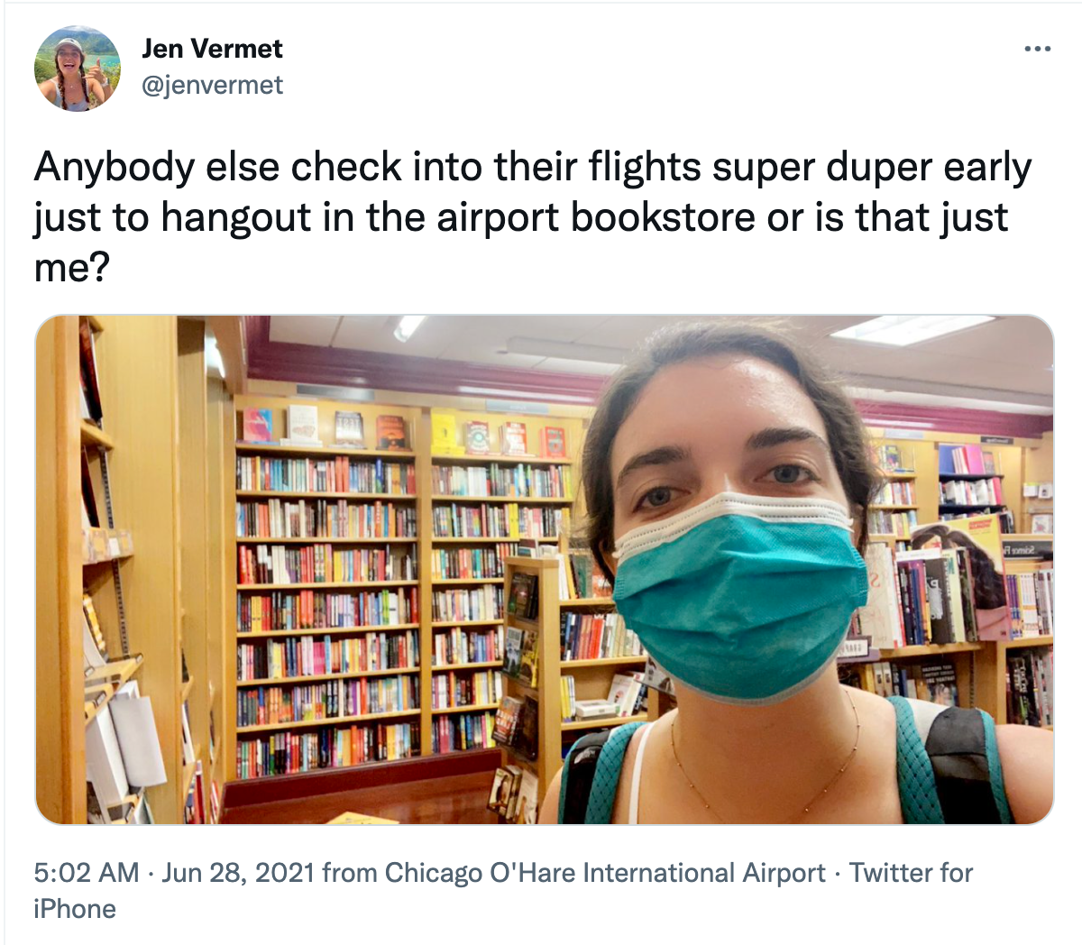 With my new in-person job as a community manager of college students, I wanted to rely on life itself to be my main source of consumption. The no books didn’t last all that long though. I gave in while I stumbled into the airport bookstore.