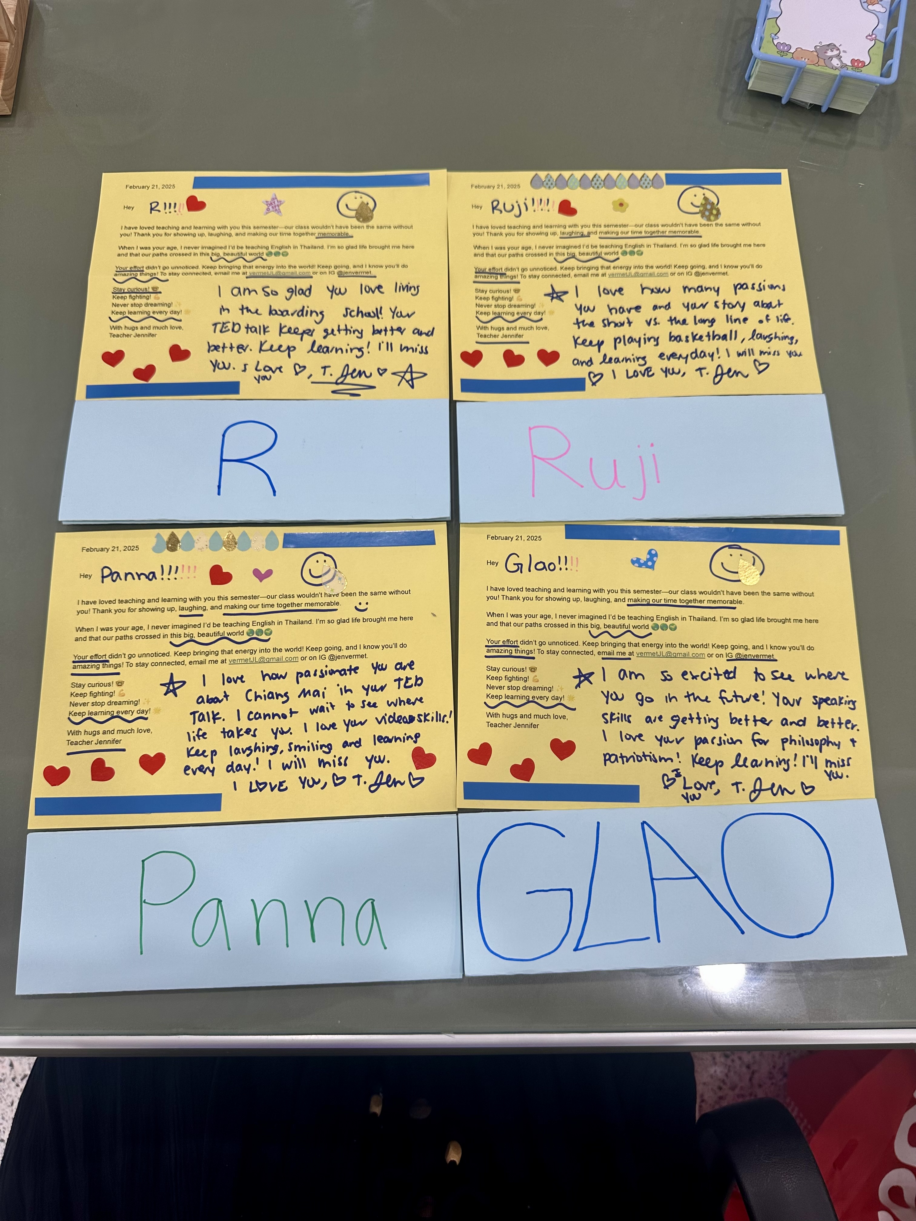 - To all my 177 Thai students. I already miss you and you will always be in my heart. I cannot wait to see where the future takes you and I also cannot wait to send you your Future Me Letters in 2030 :-)