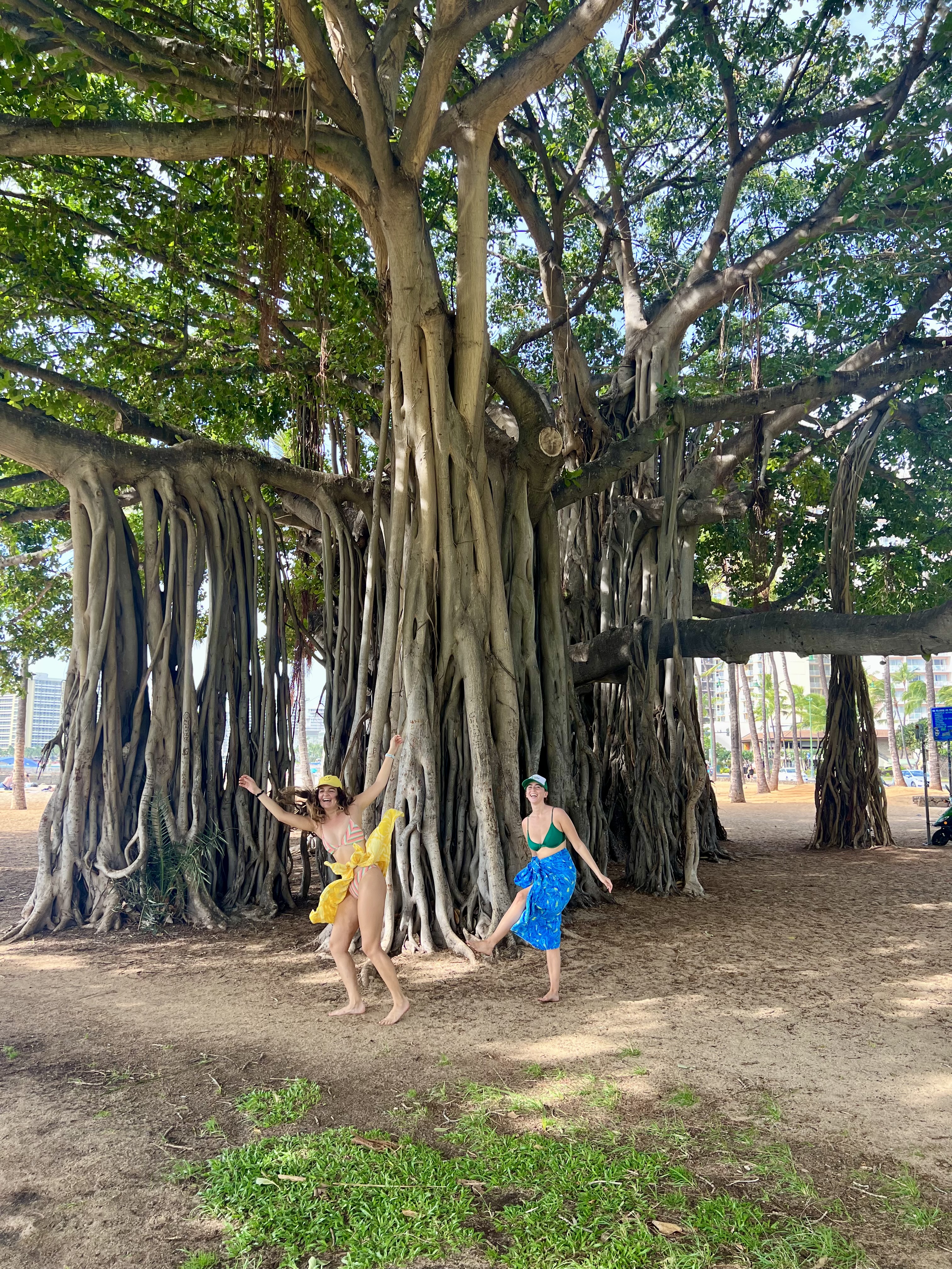 Just a couple of giggling girls playing under a beautiful banyan tree :)