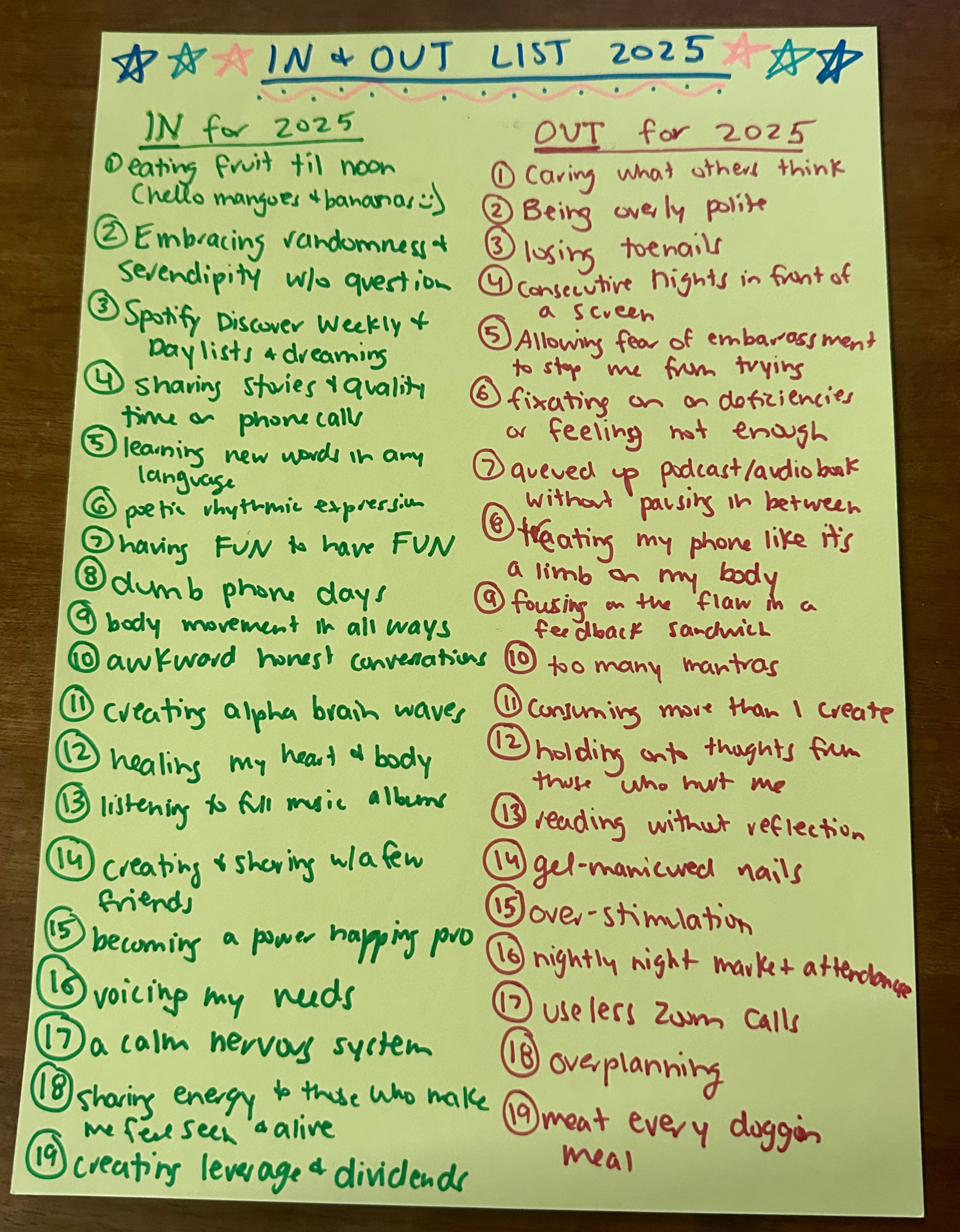 2025 â In & â Out list