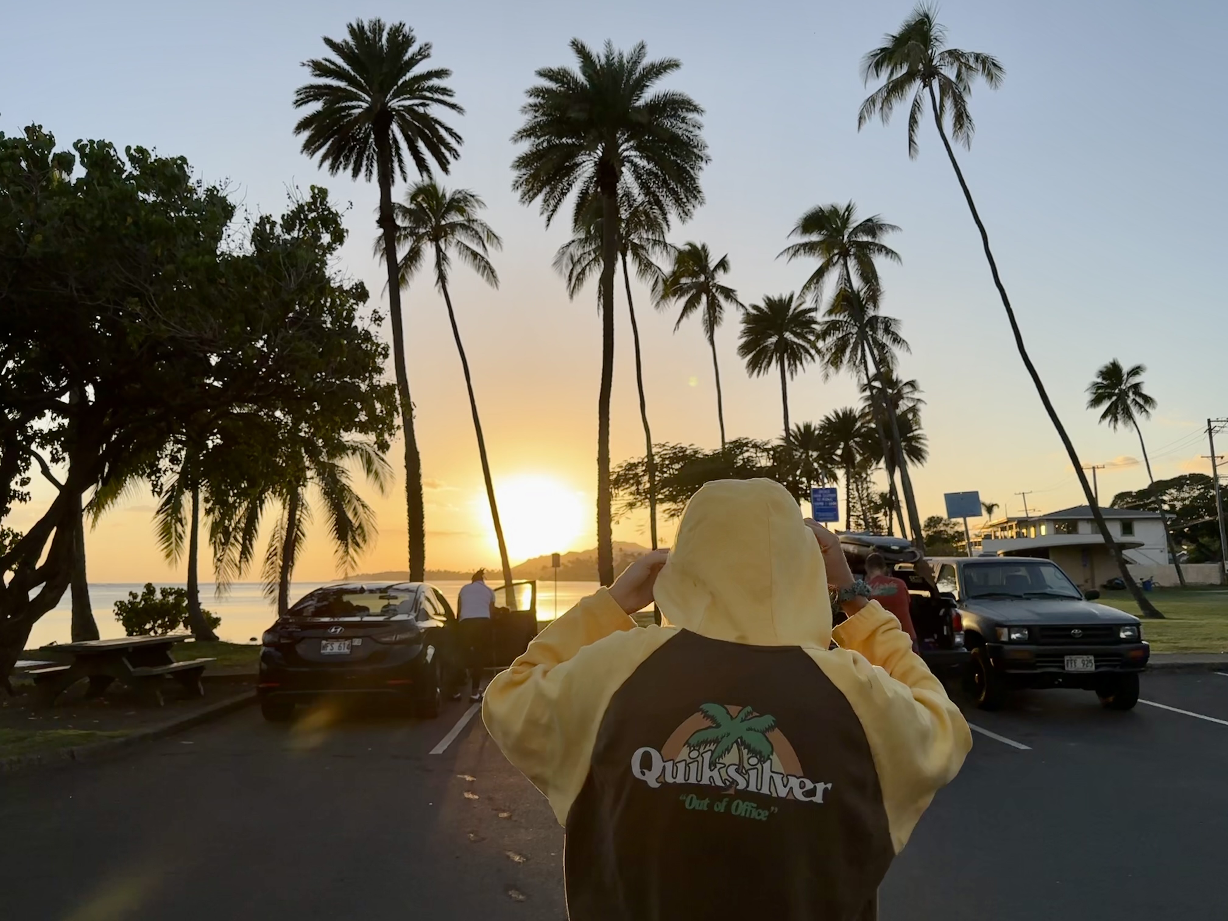 Greetings from the parking lot of my new fave secret surf spot I found on O’ahu, Hawaii 🏄🏻♀️