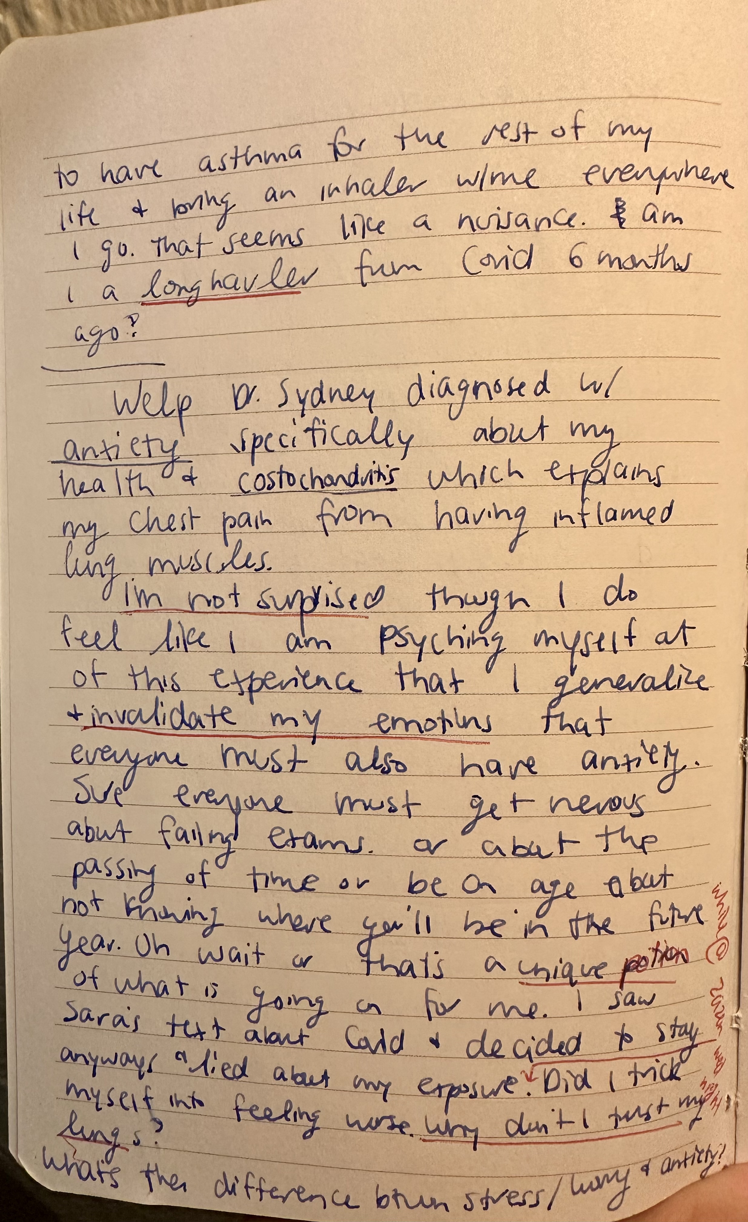 Thankfully, I had chosen my main theme for the year to be patience, so I started to take things more slowly and be more thoughtful with experiments. I made sure to more consciously get sunlight, take my sleep more seriously, and journal more actively about what was going on in my body. One of my favorite prompts became: “what is worrying me right now?'“ I listened to 4000 Weeks by Oliver Burkeman to navigate a healthier relationship with time. On Wednesday nights and Sunday mornings, I sat at the Zen Center searching for peace. I shifted recording my daily vlogs to be more mindful moments where I checked in with myself.