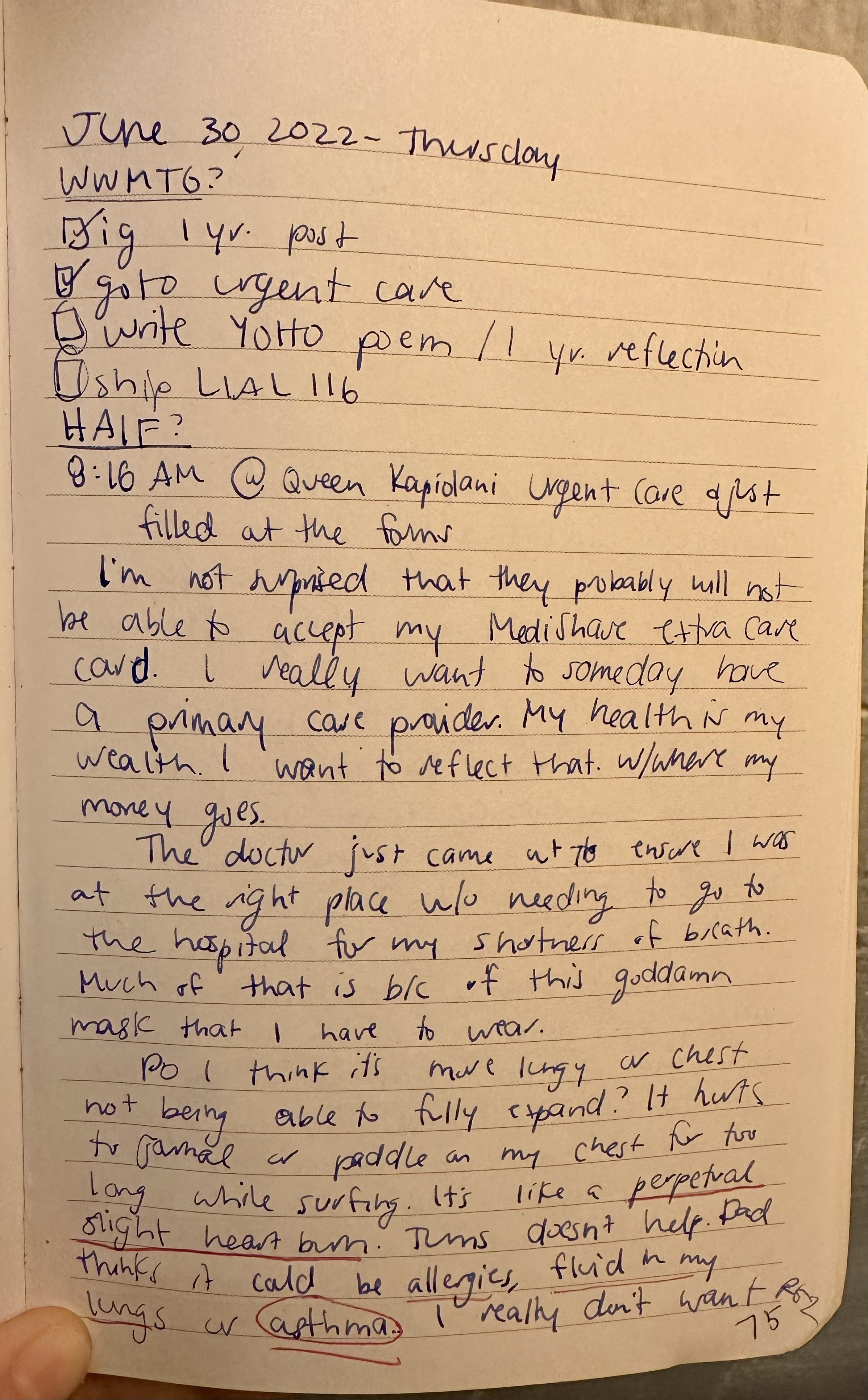On June 30, 2022, I was diagnosed by a healthcare professional with anxiety. Two days prior, I had a panic attack. June 28 is a date that holds a bit more pressure for me as it’s the day I moved to Hawaii in 2021. On top of some covid hysteria, work pressure, and the story swirling in my head that no time had passed in the past year, I lost control.