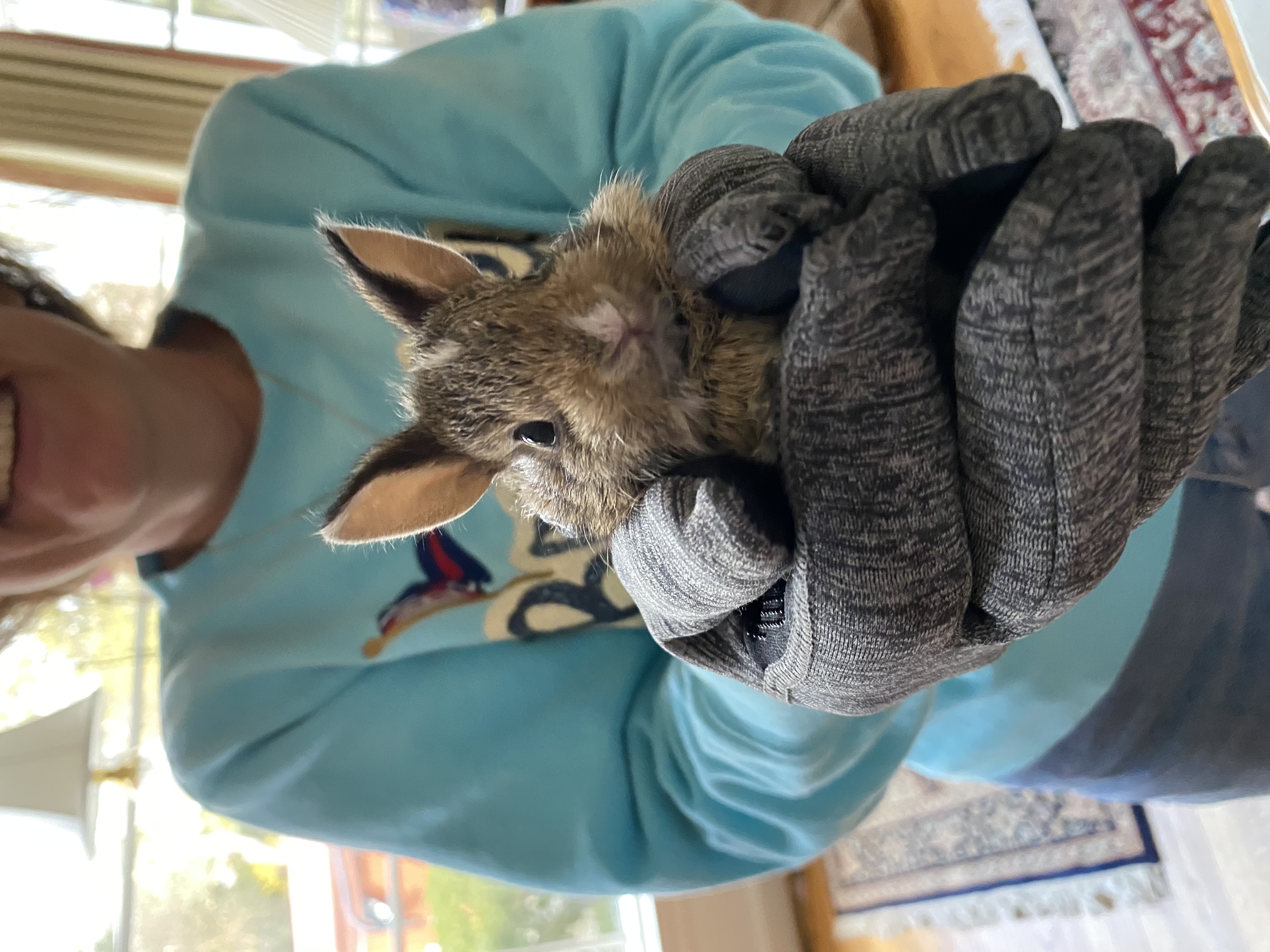 My family has temporarily made an addition (until the snow melts) of three baby bunnies. I found them while walking my dogs abandoned in a parking lot. It has been a rewarding project to nourish these paralyzed babies back to life. I am grateful I was wearing my glasses to find them. Jellybean, Bunbun, and Thumper have brought more joy into my life these past few days. Featured below is the most energetic of the bunch, named Jellybean.