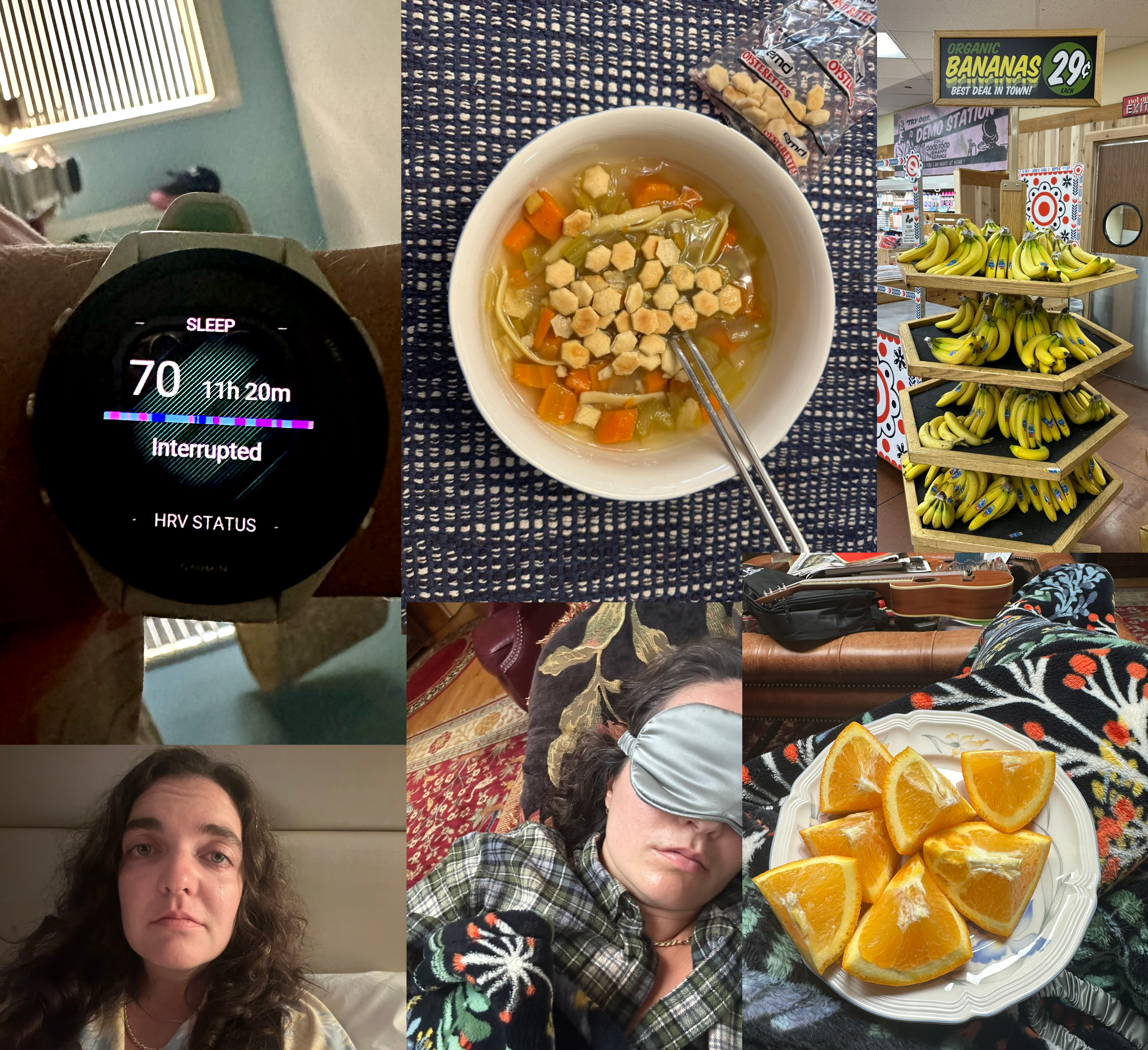 Finally healing from either the flu or covid after being in bed for two weeks. I lost 10 pounds, had my first migraine with nausea, spinning room, and light sensitivity.