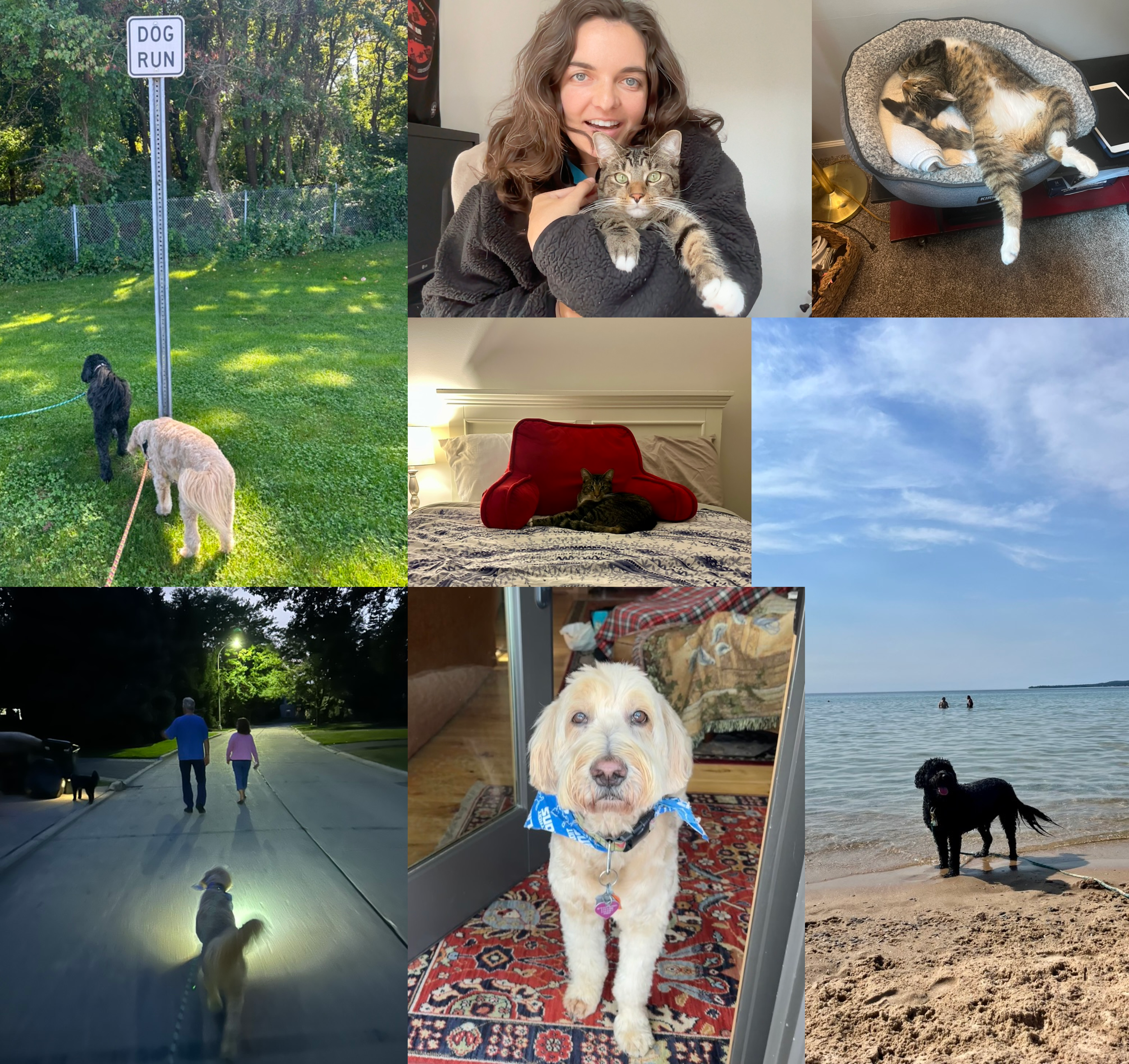 Seeing the golden doodle doggies Paisley and Polo swim like little sea otters in Lake Michigan