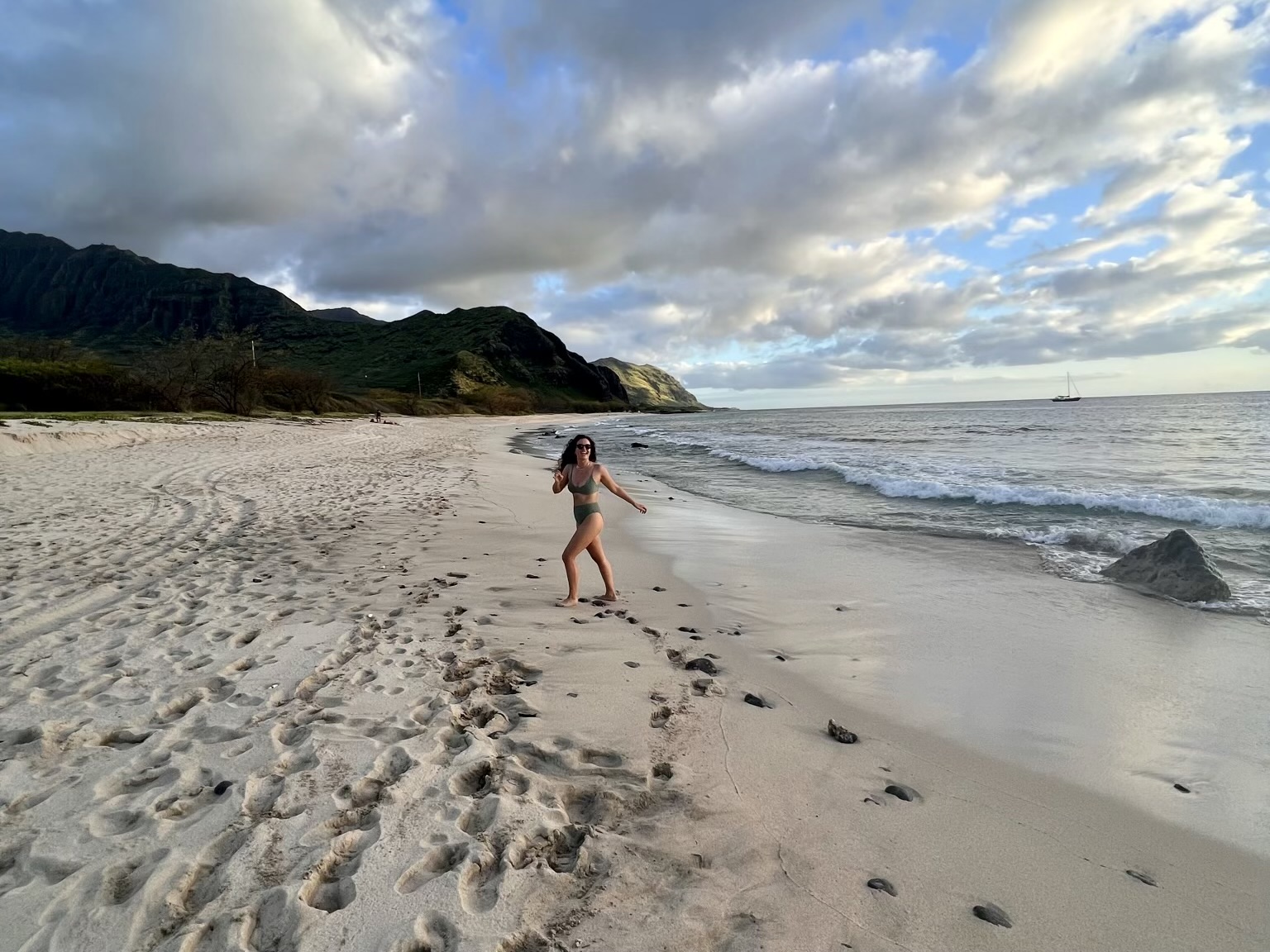 For a few reasons: the sand is soft but not too fine that it pelts you with the wind. The waves roll in beautifully and enough to go boogie or body surf. The beach bends around next to mountains with a for a lovely scenic stroll. Not many folks know about it or make the trek out here so itâs more private. Thereâs ever some coral to snorkel and stalk fish but not too much that you worry about stepping on it.