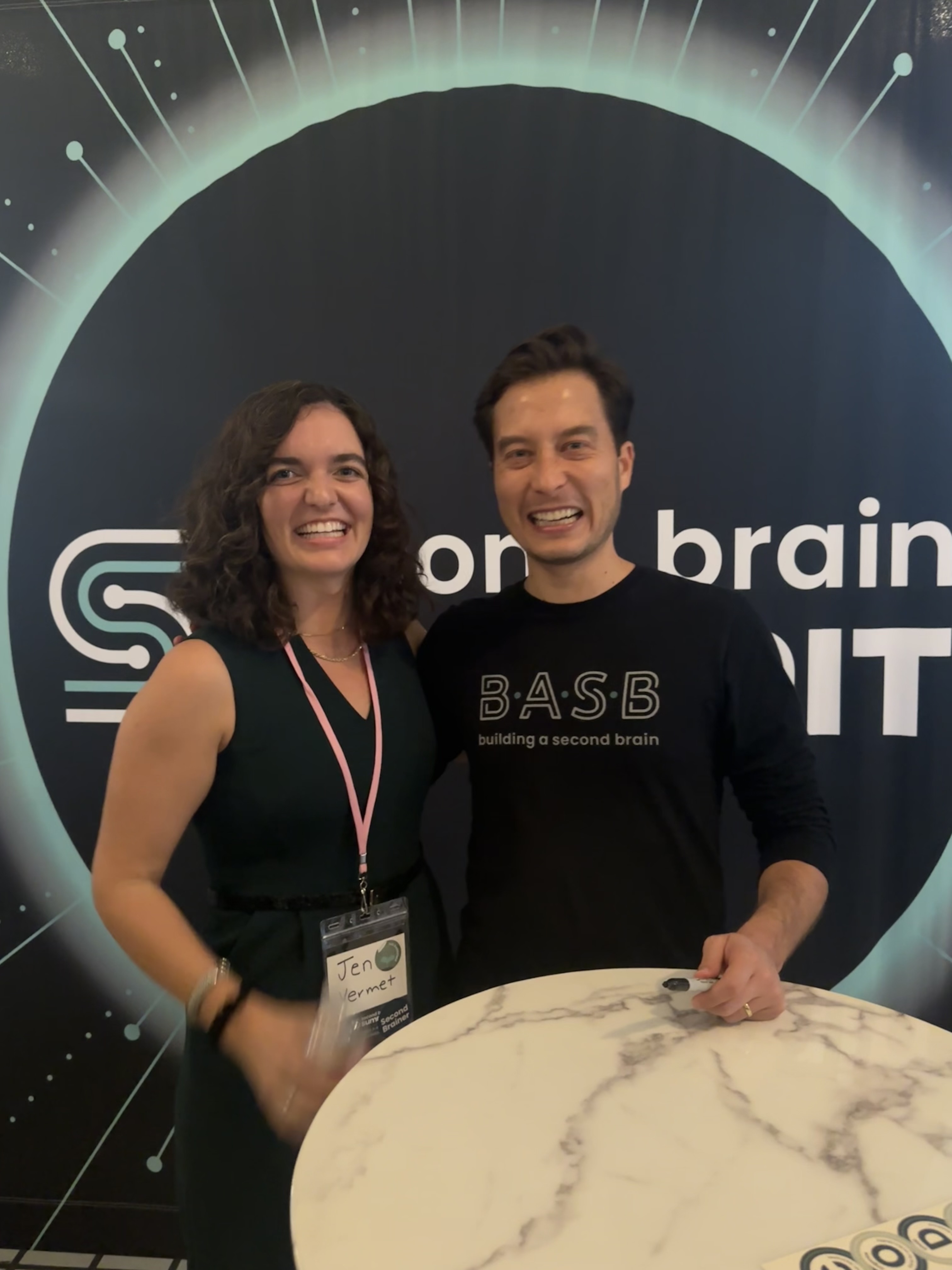 Meeting Tiago Forté for the first time at his Second Brain Summit. When I said it was nice to meet him finally, he said he felt like he had already met me many times before, but this was a first time not in pixels.
