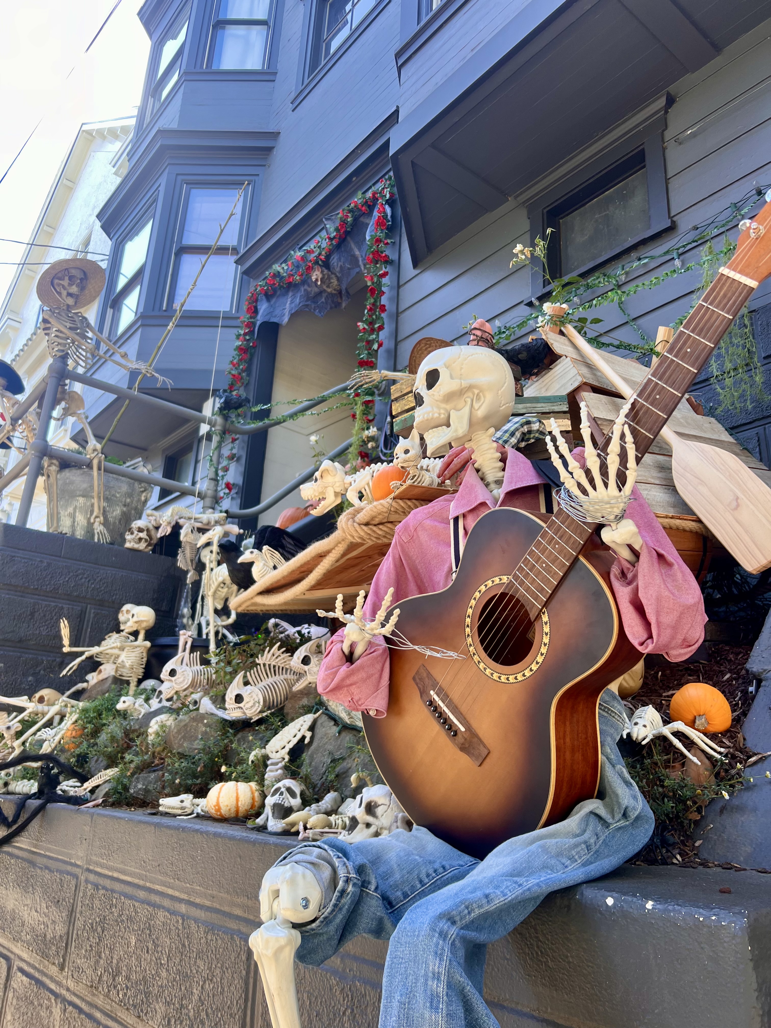 a bag of bones making music, a very water-resistant rain jacket, nausea-reducing goggles for Topanga Canyan, uncomfortable stick-on nails, a witch hat, a camel from Morrocco, and ultrasound gel injections.