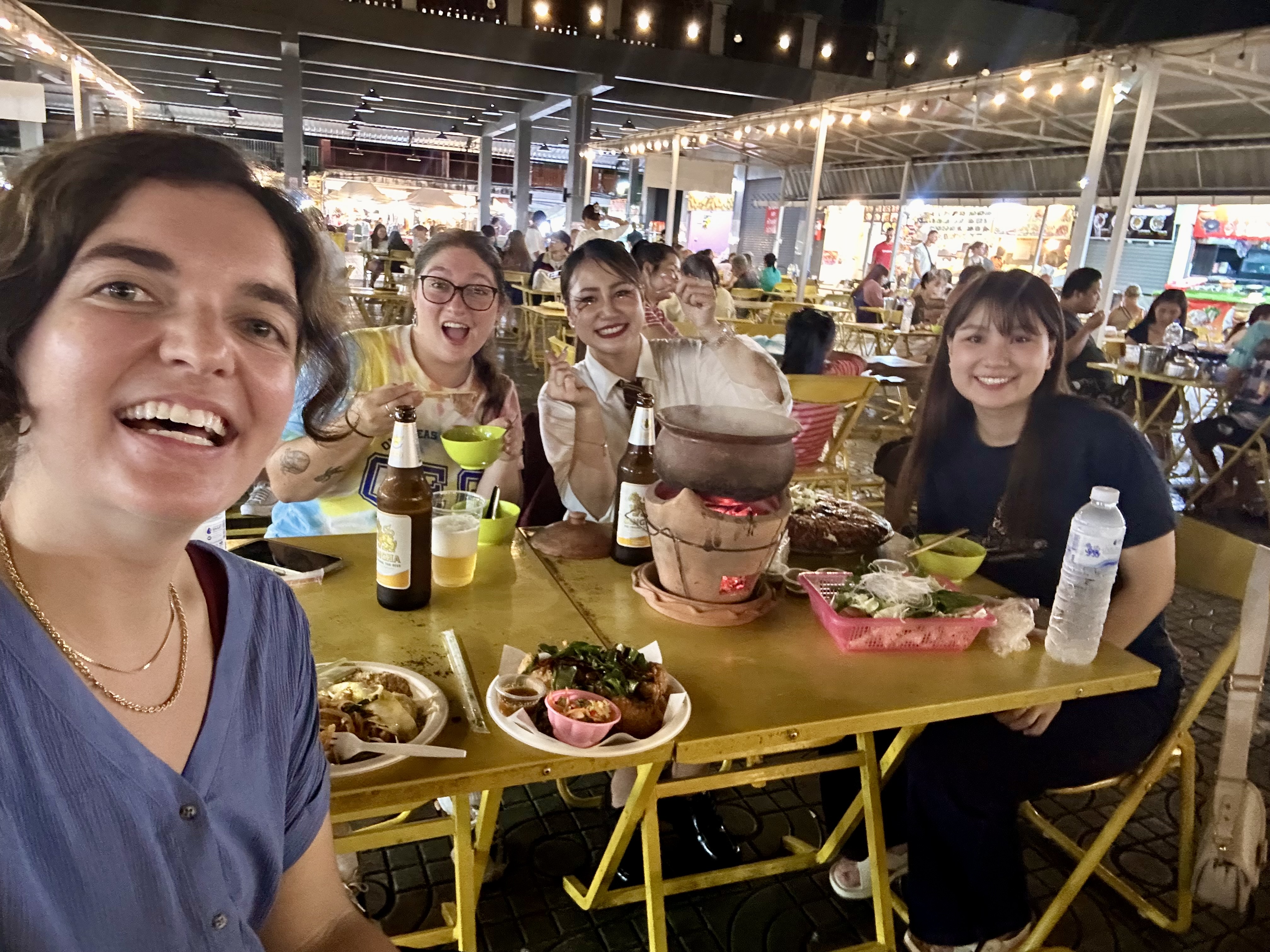 After my two classes, I ate lunch with Emily, Boom and Goy at the canteen. I felt like I was speaking slow English because thatās how I speak to my students. Itās weird to try to simplify and filter how I communicate so others can understand me better. My safe and bland vegetable stirfry and boba tea cost 50 baht, which is $1.48. Not shabby.