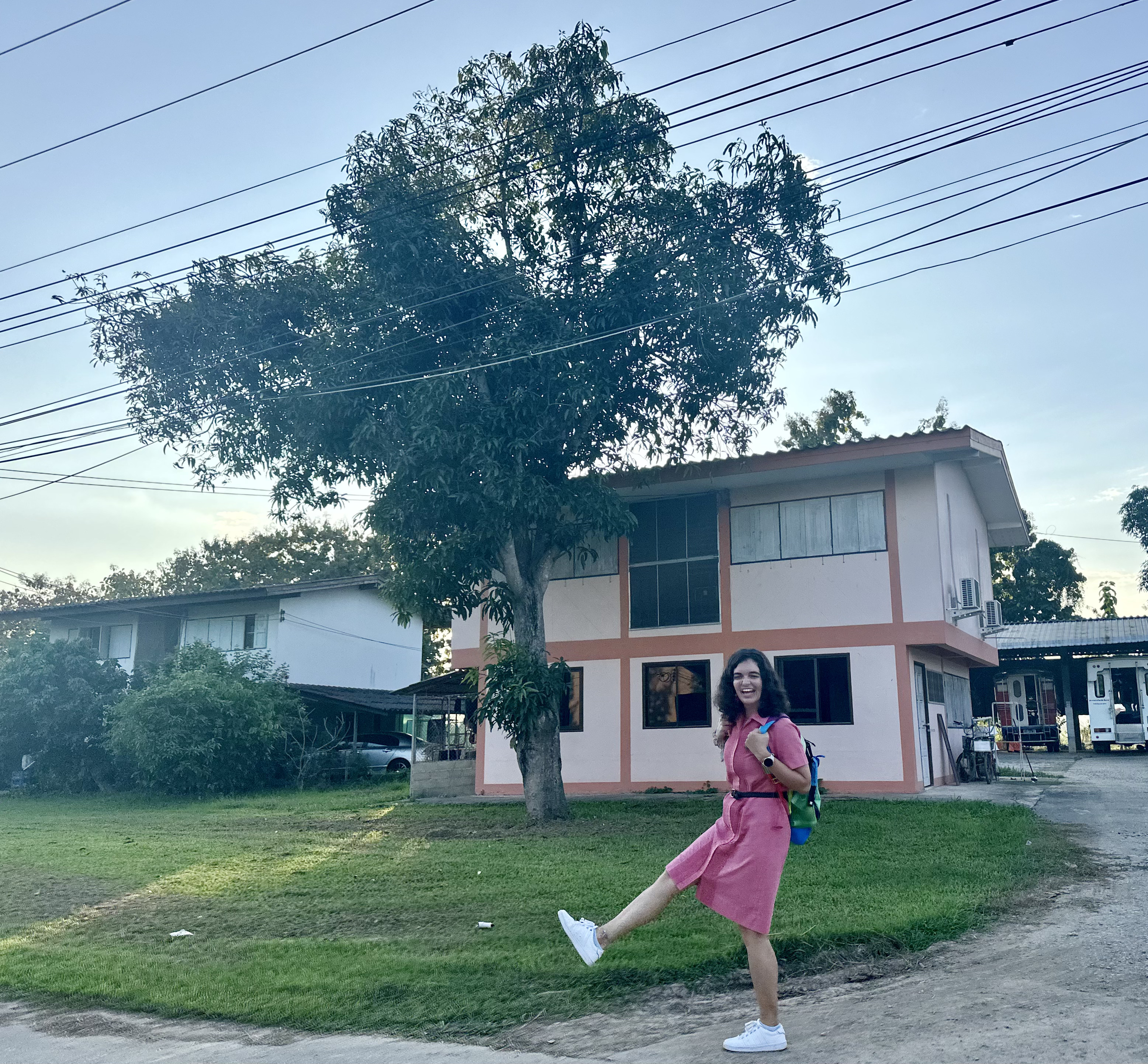 Friday morning I woke at 5:30am to the school horns across the gravel road from me. I live on the campus. The students woke up, I went back to bed until my 6:40 alarm. I woke in a puddle of sweat because my aircon was leaking water, and I was anxious that it would flood my cute little mango-colored house. I took my first shower of the day, journaled, woke up my roommate, ate a funky tasting banana and a Costco protein bar, and was off. My walk to school is four minutes. To sign in, I scan my fingers and eyes before 7:45 AM. There was another school assembly in front of the school, with flag raising and the school song and announcements, all in Thai. I learned about this at the last minute because my Foreign Language school office was empty, and I didnāt know where everyone was.