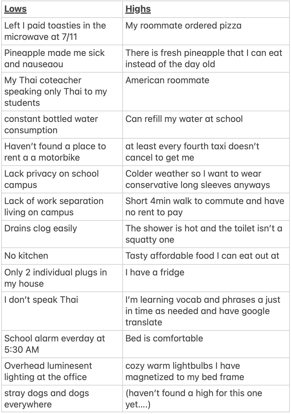 The three most popular notes on my phone have been of the new Thai words I learned, the names of the teachers I meet, and the expenses of the cash I pay for every meal. There are so many notes I could share with you. Iāve centered this letter below as a zoomed-out update.