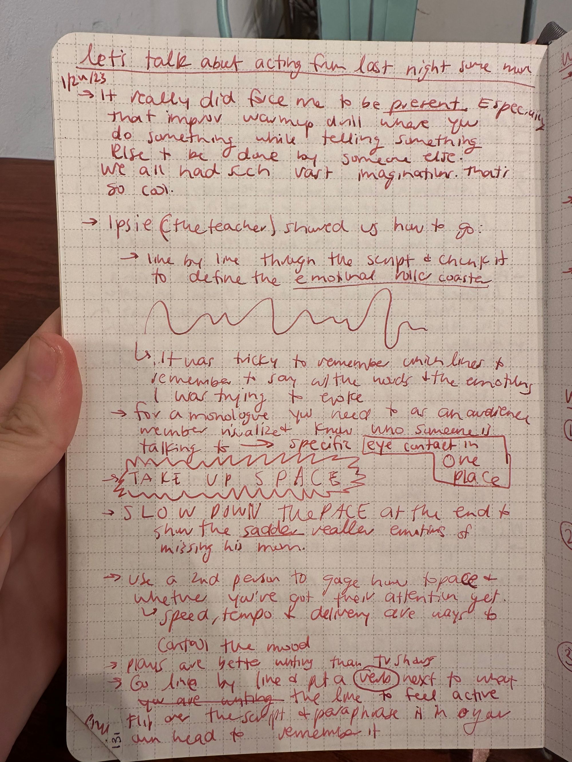 Acting forces me to put my imagination to the test.I can channel and use all those memories from past experiences and introspection while emoting.I'm going to transcribe these eventually..