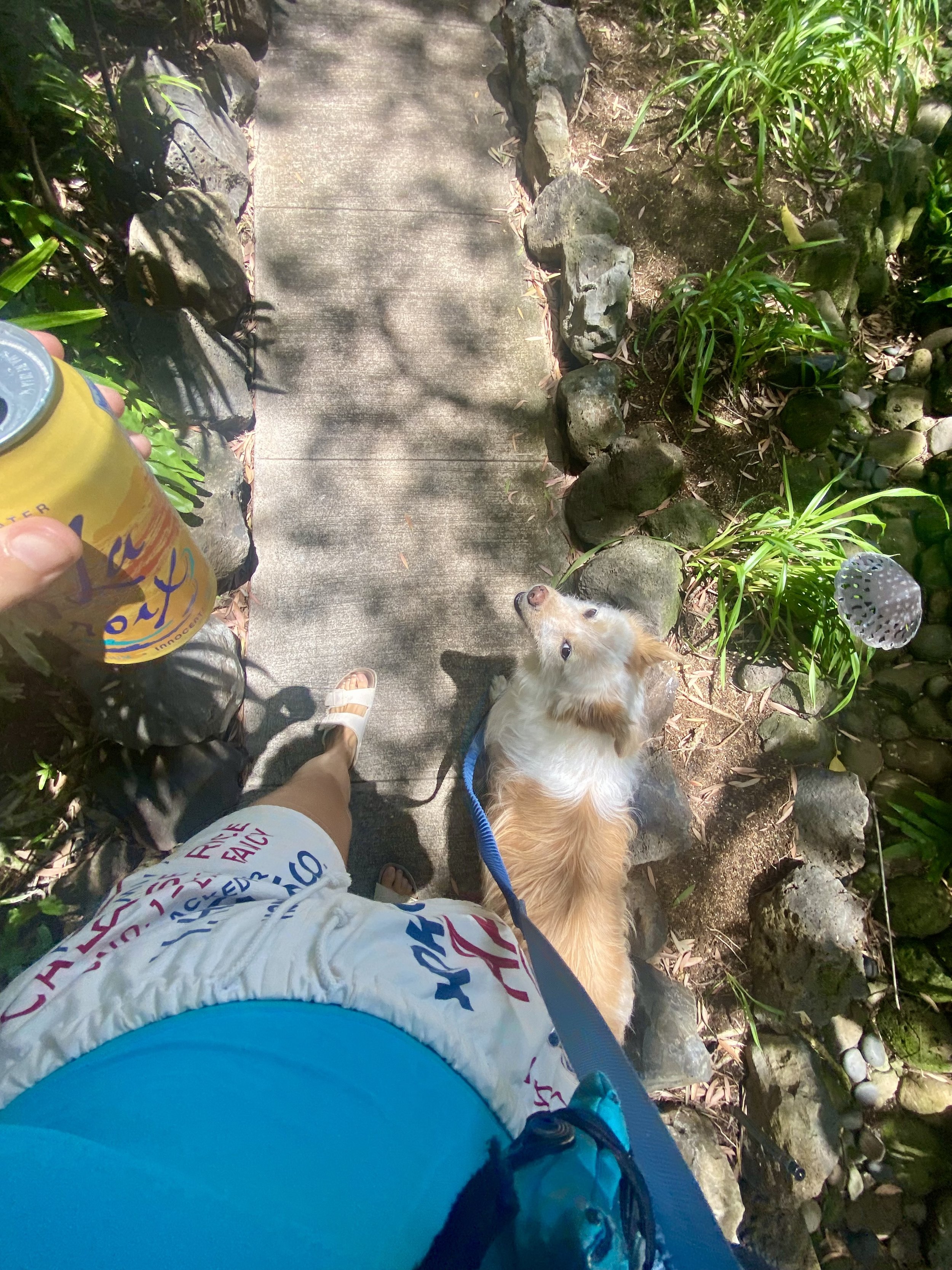 Sipping a La Croix in my favorite rice shorts while walking Winchester, the most chill pupper I’ve ever met