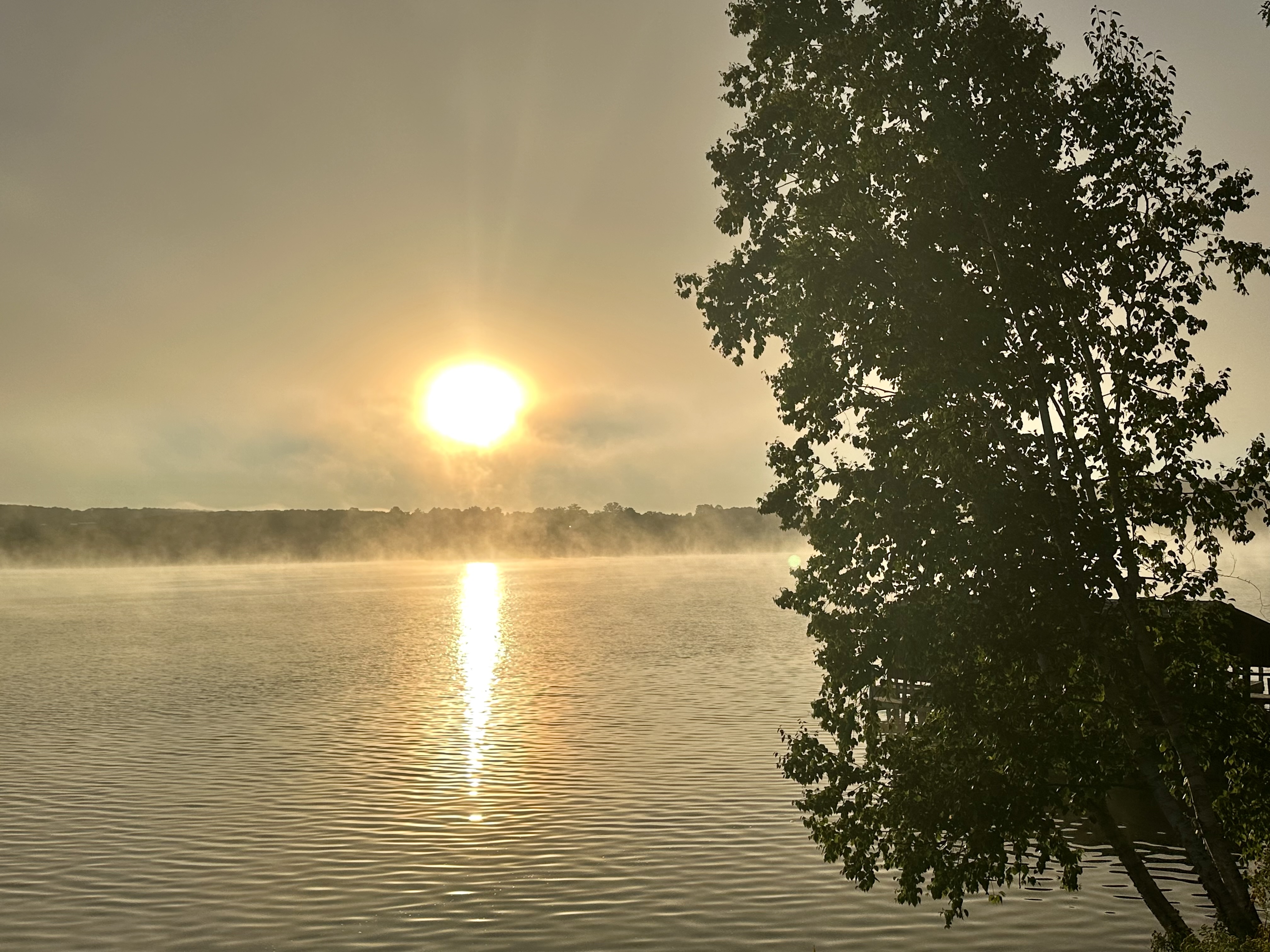 Greetings from a foggy sunrise and my pal Ernie in Petoskey, Michigan!