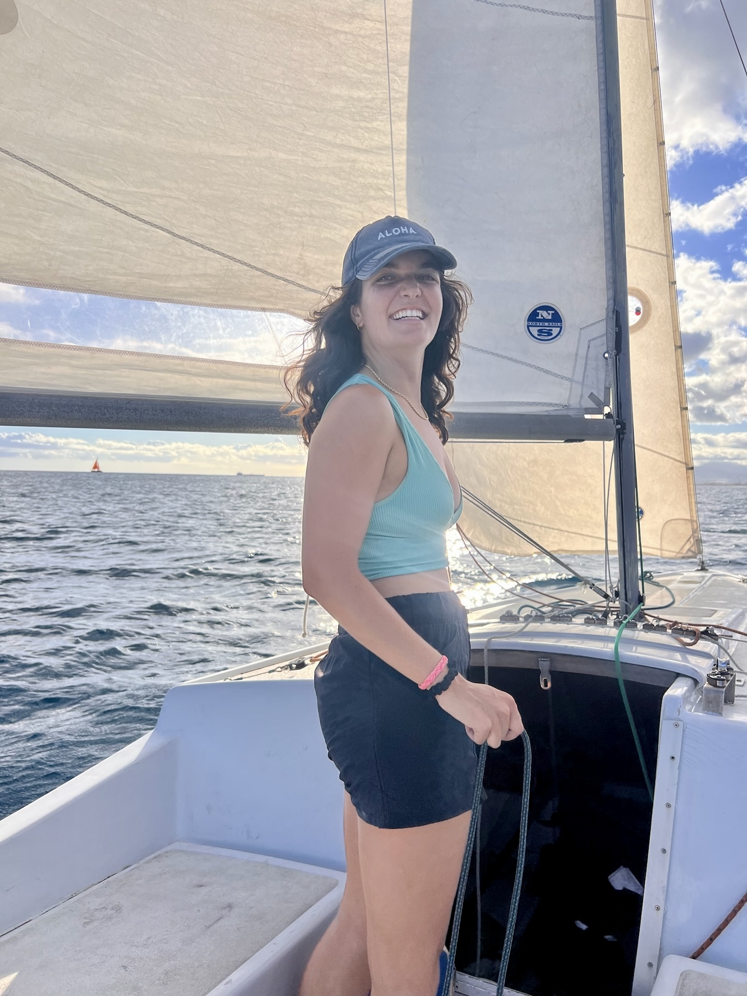 Sailing a cal20 with my inventive roommate Em, who could jerry-rig the main sheet after it snapped out at sea. Thankfully, we still got to enjoy a nice sail.