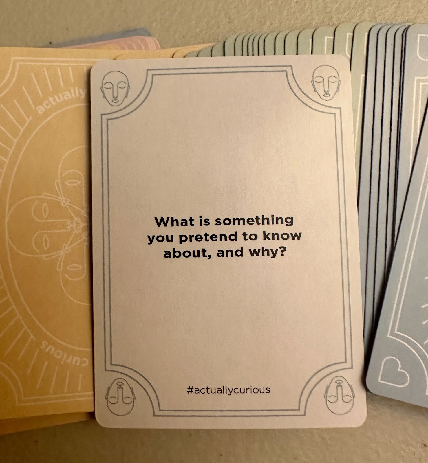 The "actually curious" card, deceptively comforting in its whiteness, stared at me expecting an answer.