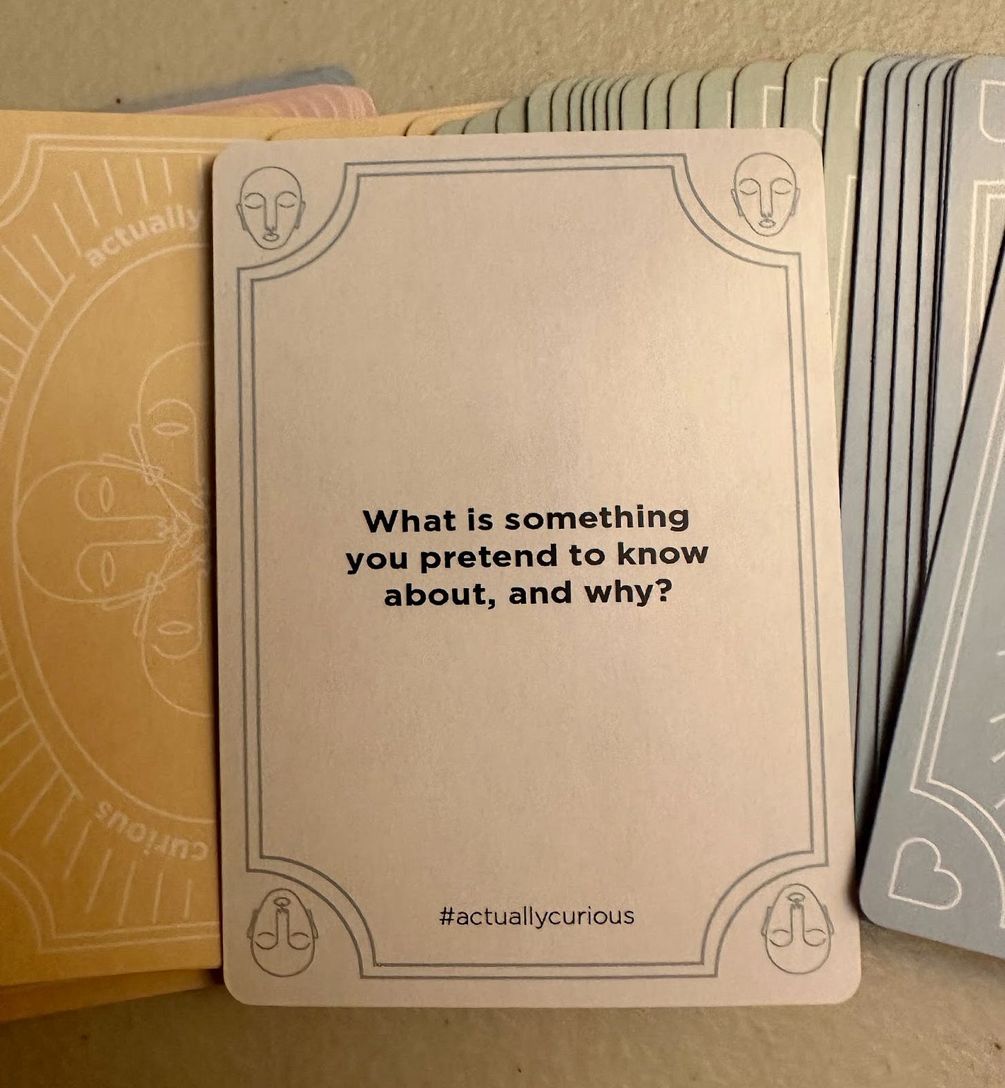 For my birthday I wanted a high tea like I did when I was ten years old, minus the American Girl Dolls. I convinced them to get gussied up in dresses worn only once in a blue moon that needed to get steamed. After the tea sandwiches and cakes were served, I excitedly whipped out my recently purchased deck of “actually curious” cards. This led to diving into an enriching intellectual conversation to connect more deeply and openly question our truths.